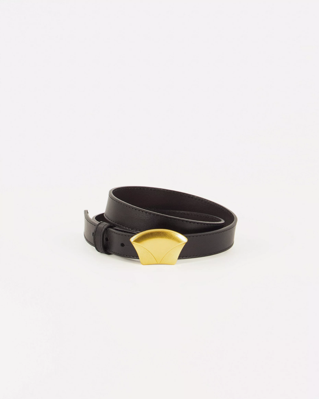 Cinturón Bonito Sessùn. Cinturón de piel trenzada con hebilla dorada con grabado de "Sessùn".