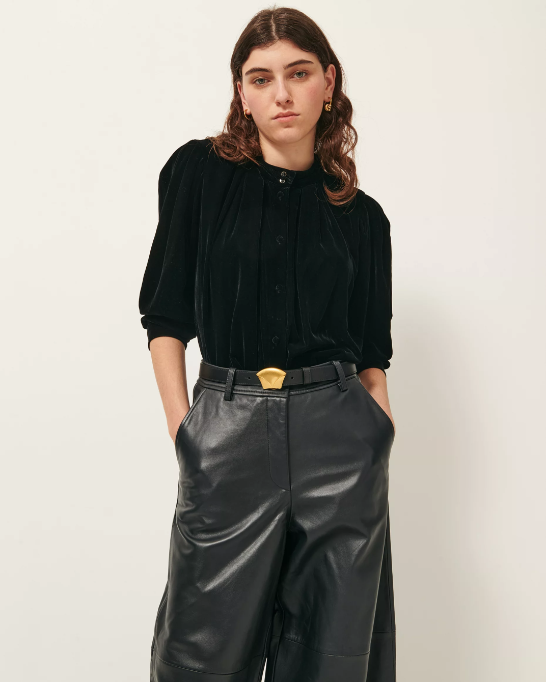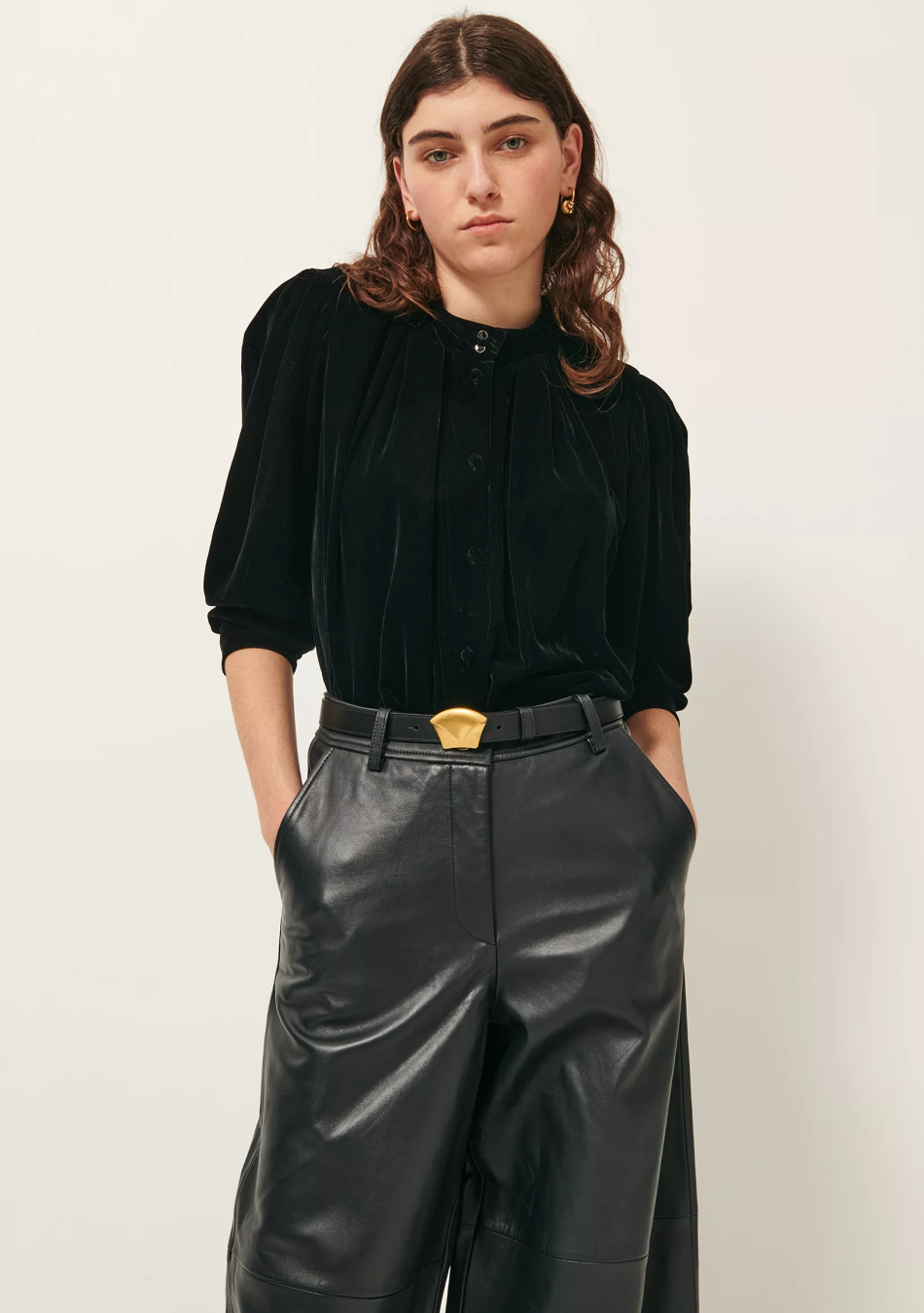 Vaquero Dalt Sessùn. Vaquero de talle alto con corte palazzo en sarga de algodón. En color azul denim.