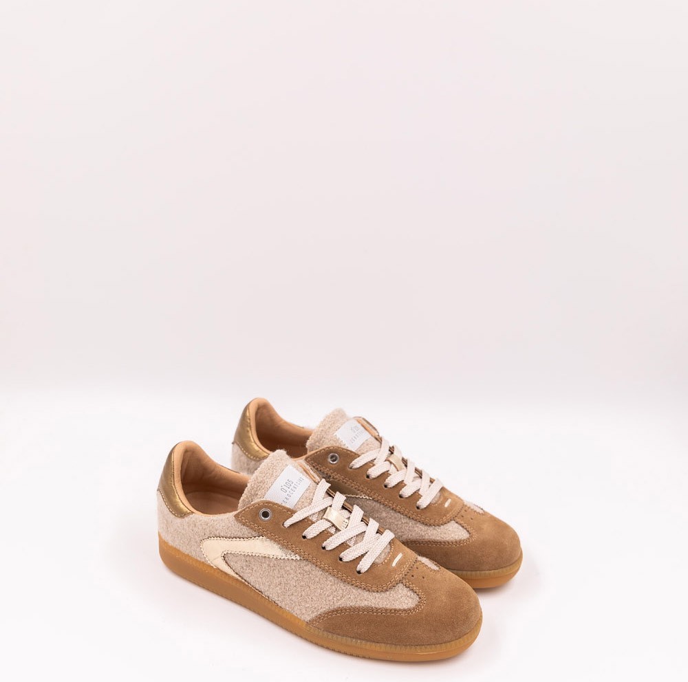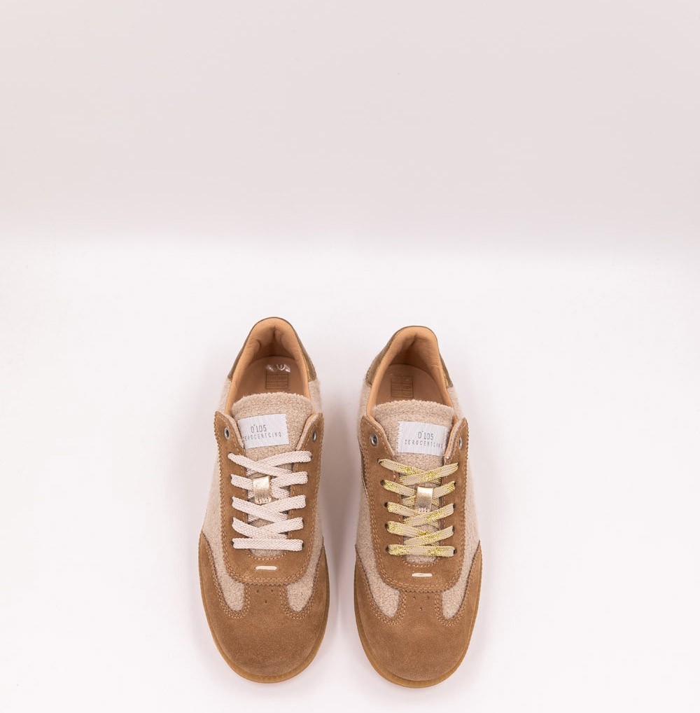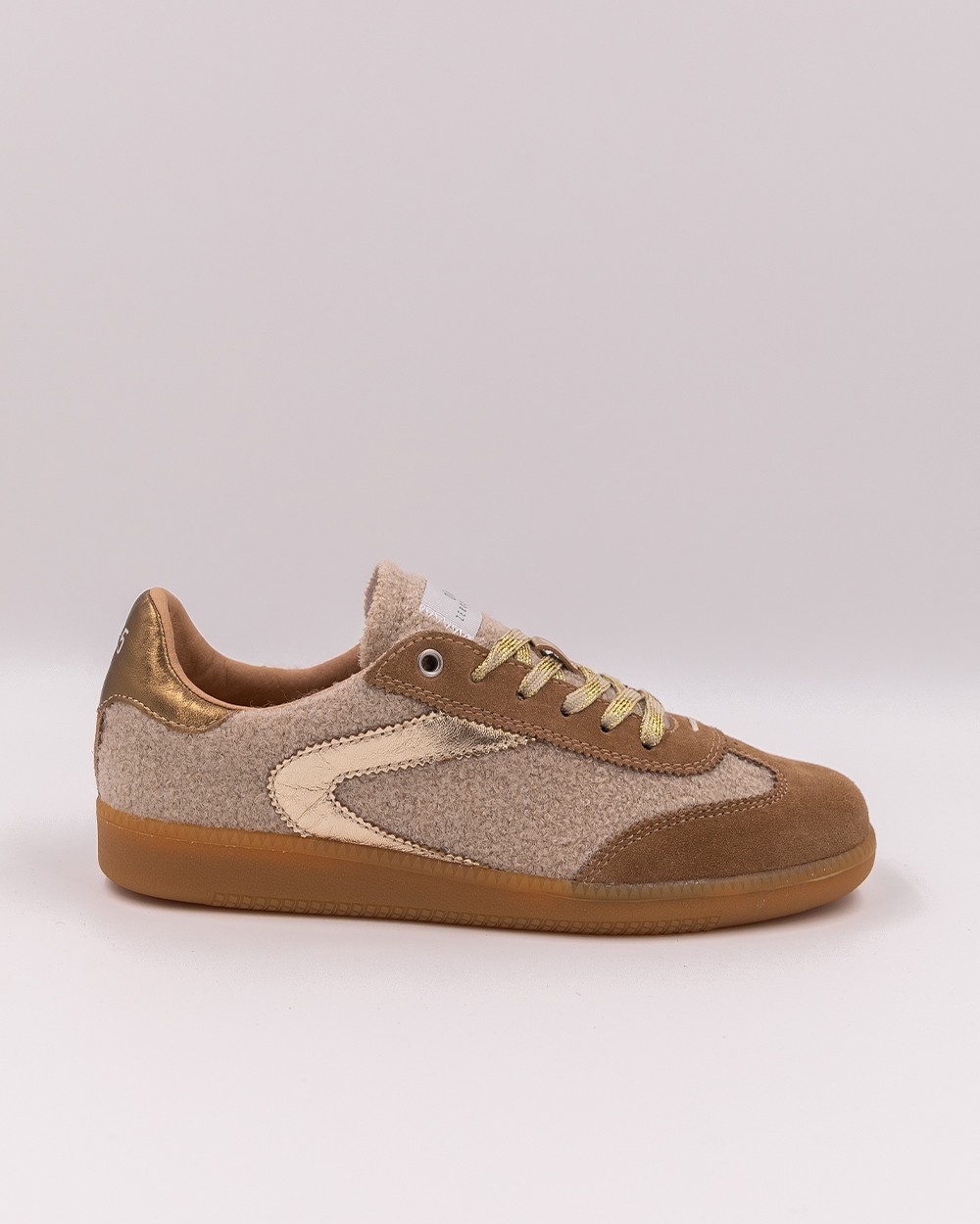 Jersey de lana merino extra fino en color marrón chocolate con cuello bobo en contraste y acabado con pequeño volante.