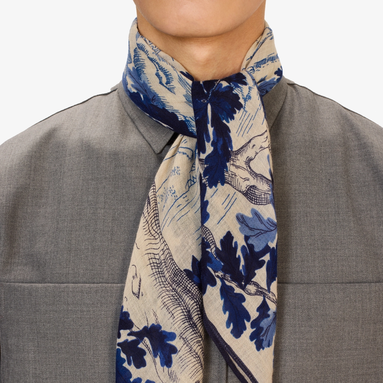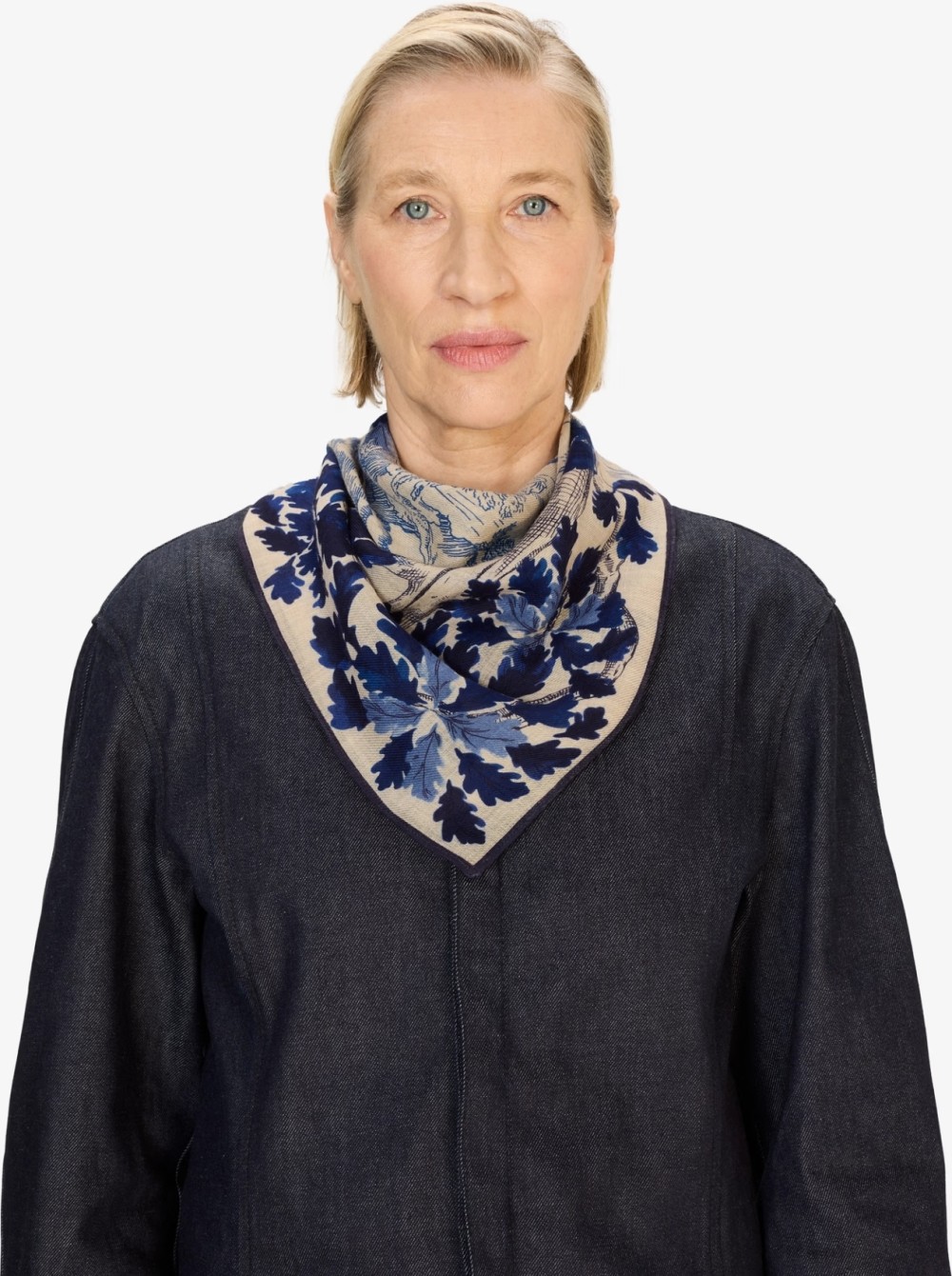 Bufanda Jorgen Inoui. Bufanda rectangular con estampado de leopardo y flores en tonos azules, verdes y rojos.