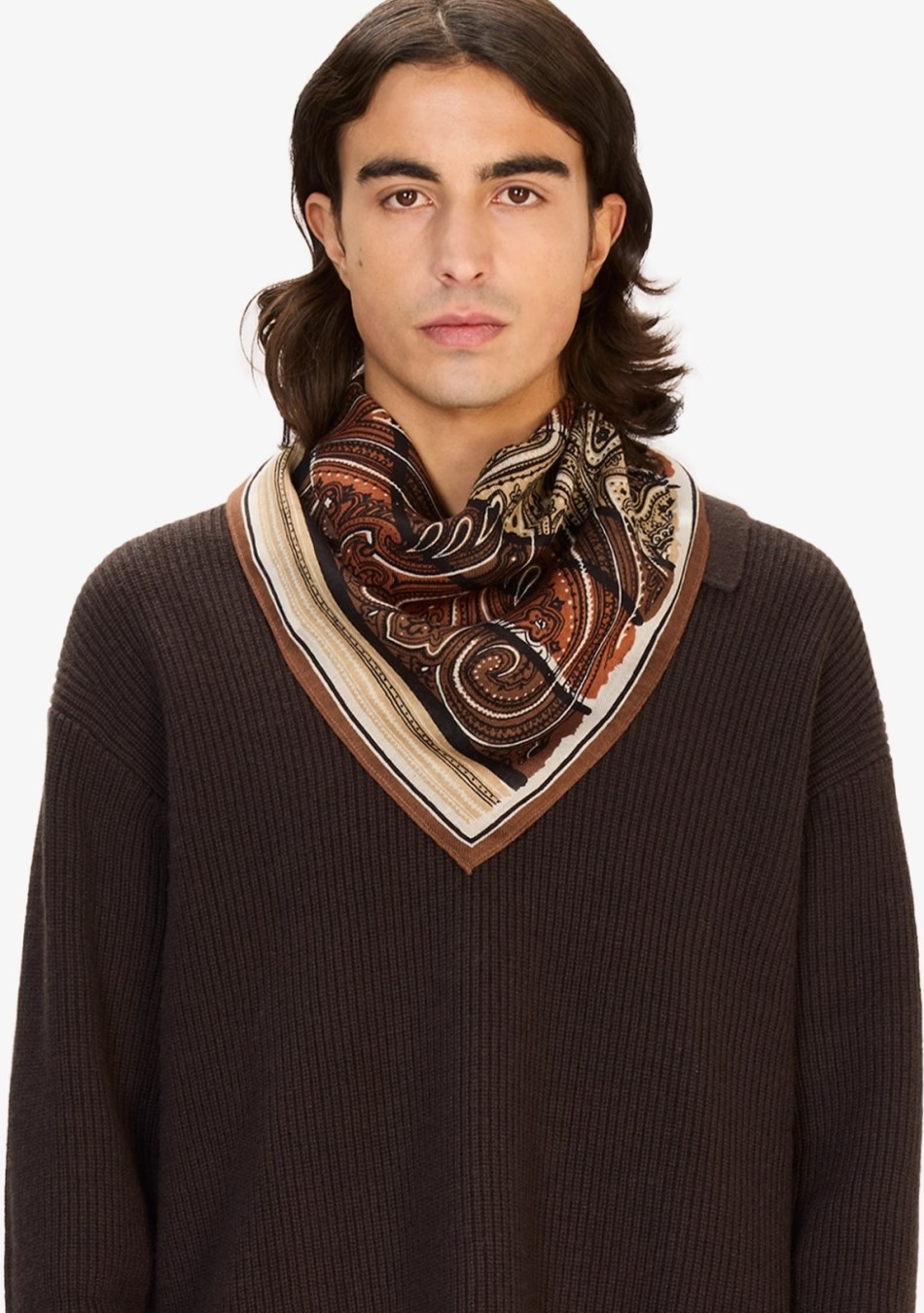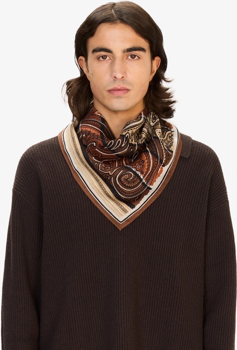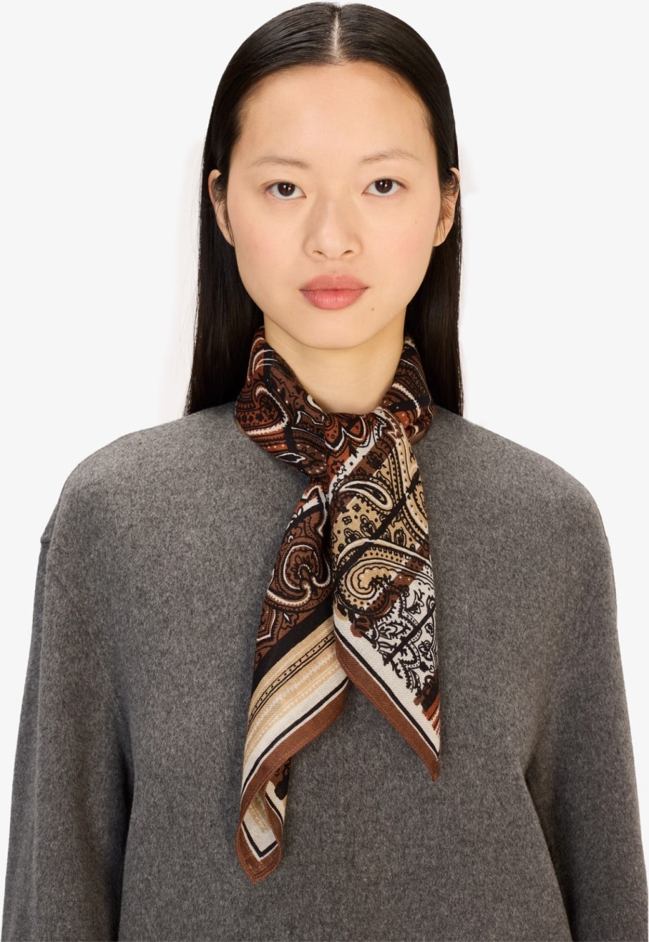 Pañuelo Paisley Inoui. Pañuelo cuadrado de lana con estampado en tonos marrones.