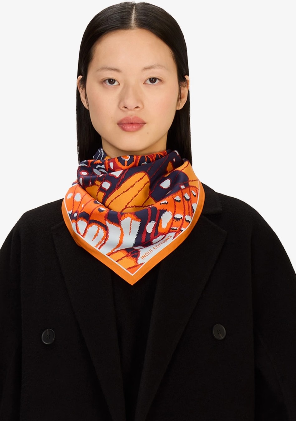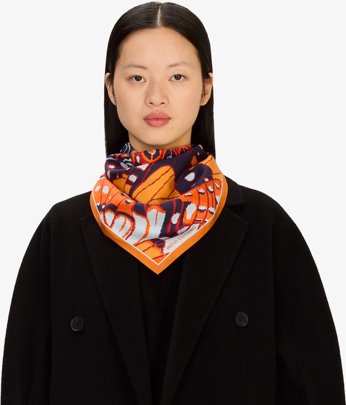 Bufanda Jorgen Inoui. Bufanda rectangular con estampado de leopardo y flores en tonos azules, verdes y rojos.