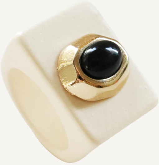 Pulsera artesanal hecha en España, elaborada en poliamida con fibra de vidrio, adornada con piezas doradas bañadas en oro de 18 quilates y piedras naturales.