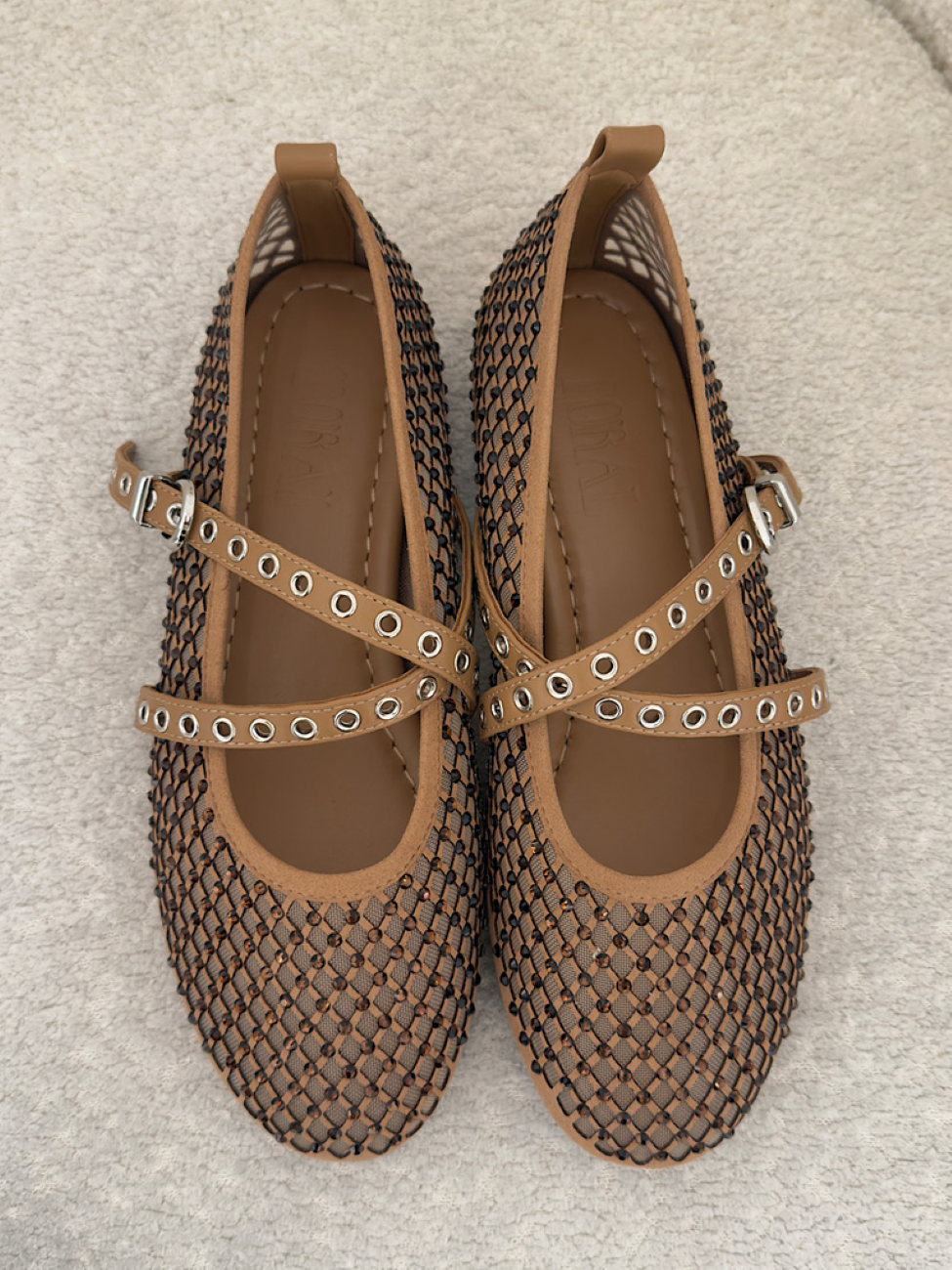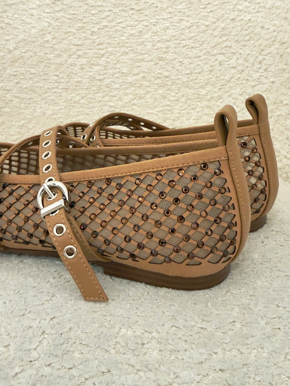 Mocasín de ante color camel con cordones de algodón estilo bandana en rojo que aportan contraste.