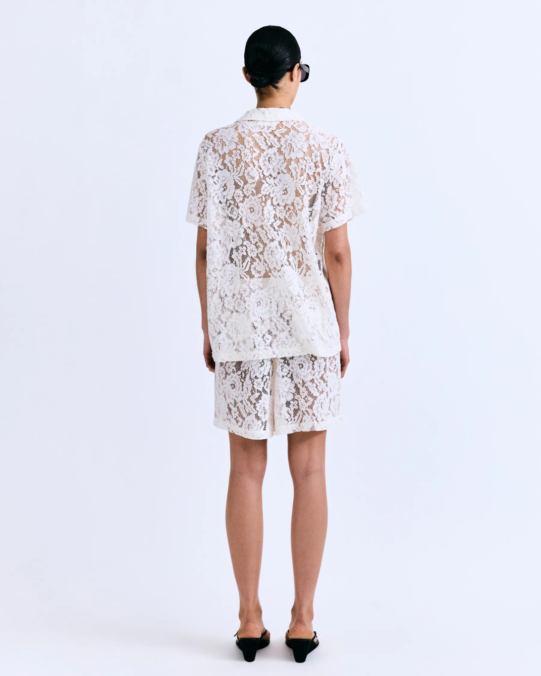 Bermuda Alfie blanca con cintura elástica y corte clásico por encima de la rodilla.