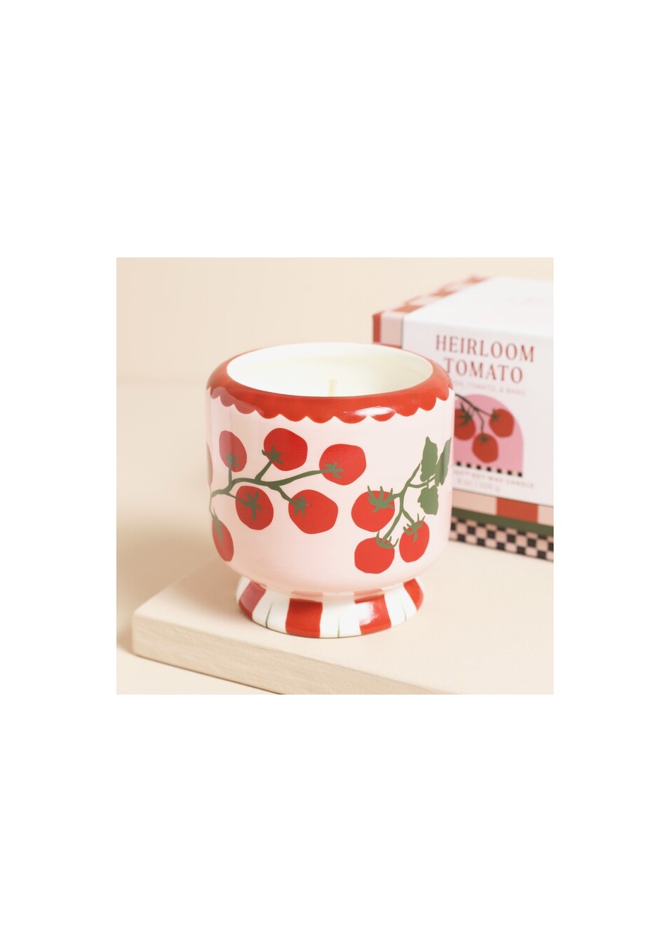 Vela de cerámica de 237 ml con un encantador diseño de tomate, pensada para quienes aman los detalles originales y la frescura de la naturaleza.