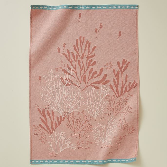 Paño Sylvie Thiriez. Paño de cocina en jacquard con estampado de leopardos en color verde caqui, azul y blanco.