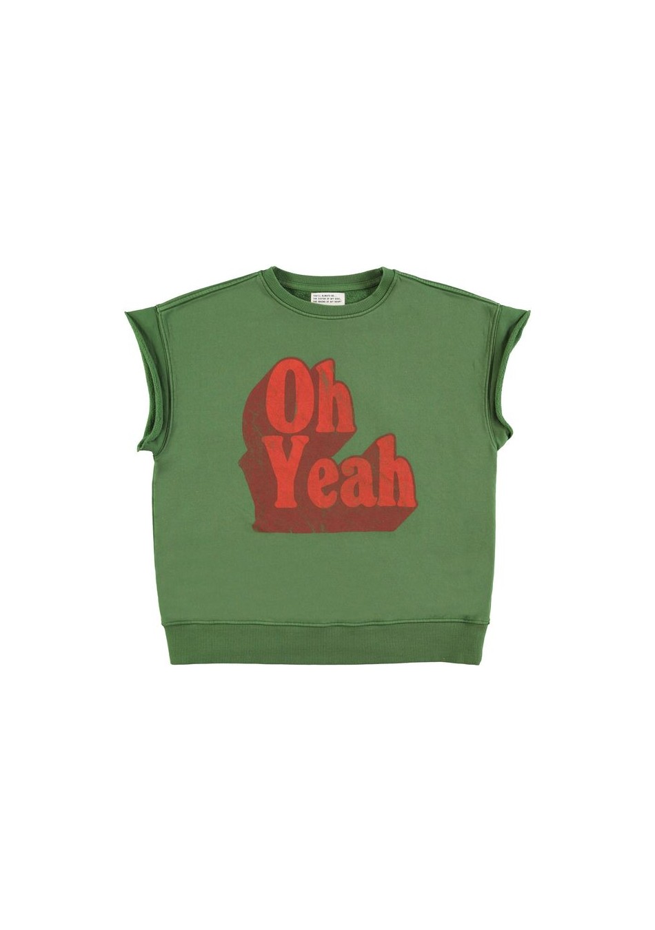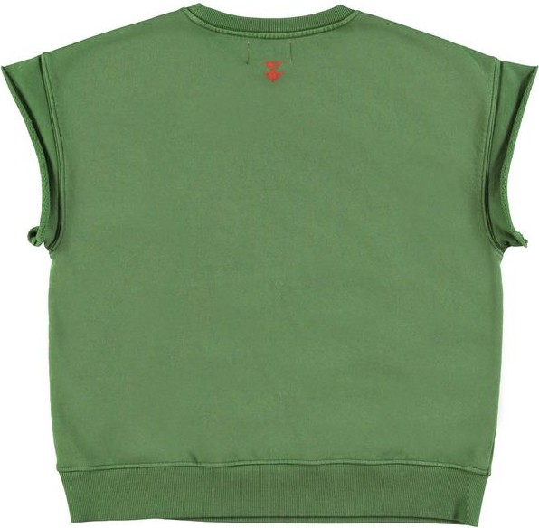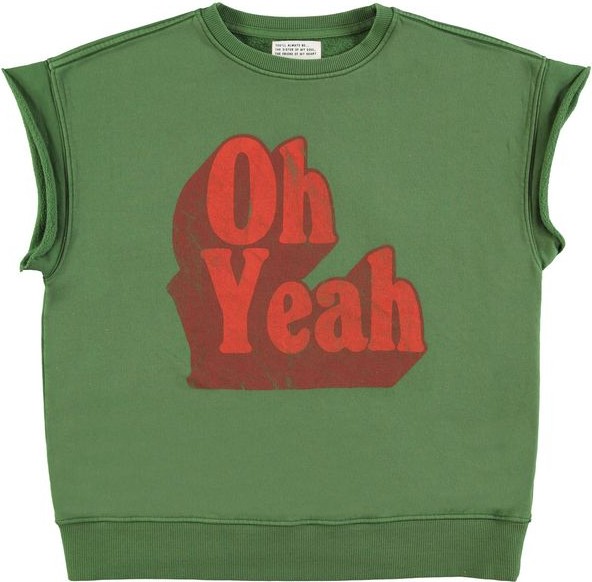 Sudadera Cheesy Sisters Depatment. Sudadera de manga larga, de corte recto y cuello con volante, en color verde oliva y con serigrafía en el delantero.