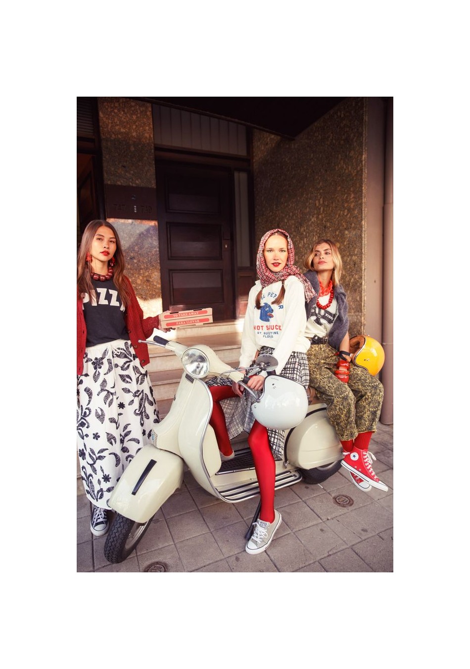 Sudadera Pizza Sisters Department. Sudadera de manga larga, de corte recto, cuello redondo y goma en el bajo, en color verde botella y con serigrafía en la parte delantera.