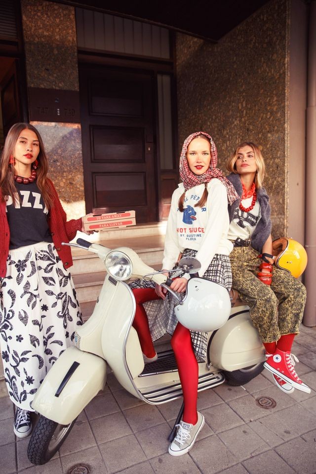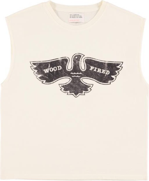 Sudadera Datil Sisters Department. Sudadera de rizo en color blanco roto, con corte recto y cuello con volante. Serigrafía en color azul y rojo en el delantero.