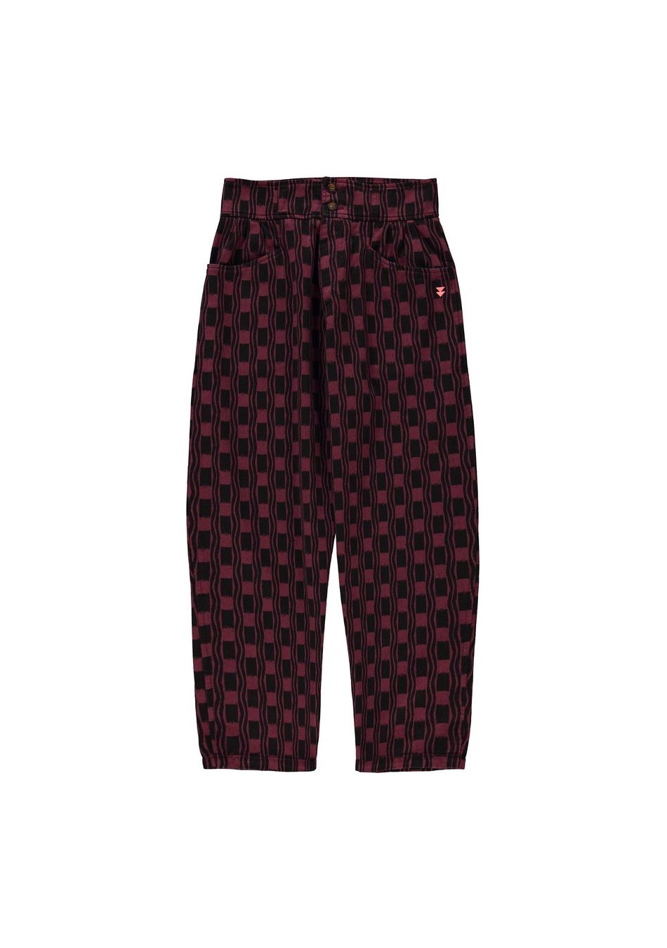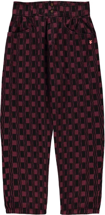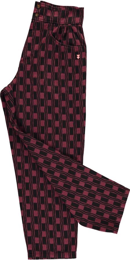 Pantalón Squares Sisters Department. Pantalón largo de tiro alto con pinzas delanteras y cinturilla ancha. Con estampado geométrico en verde oliva y negro.