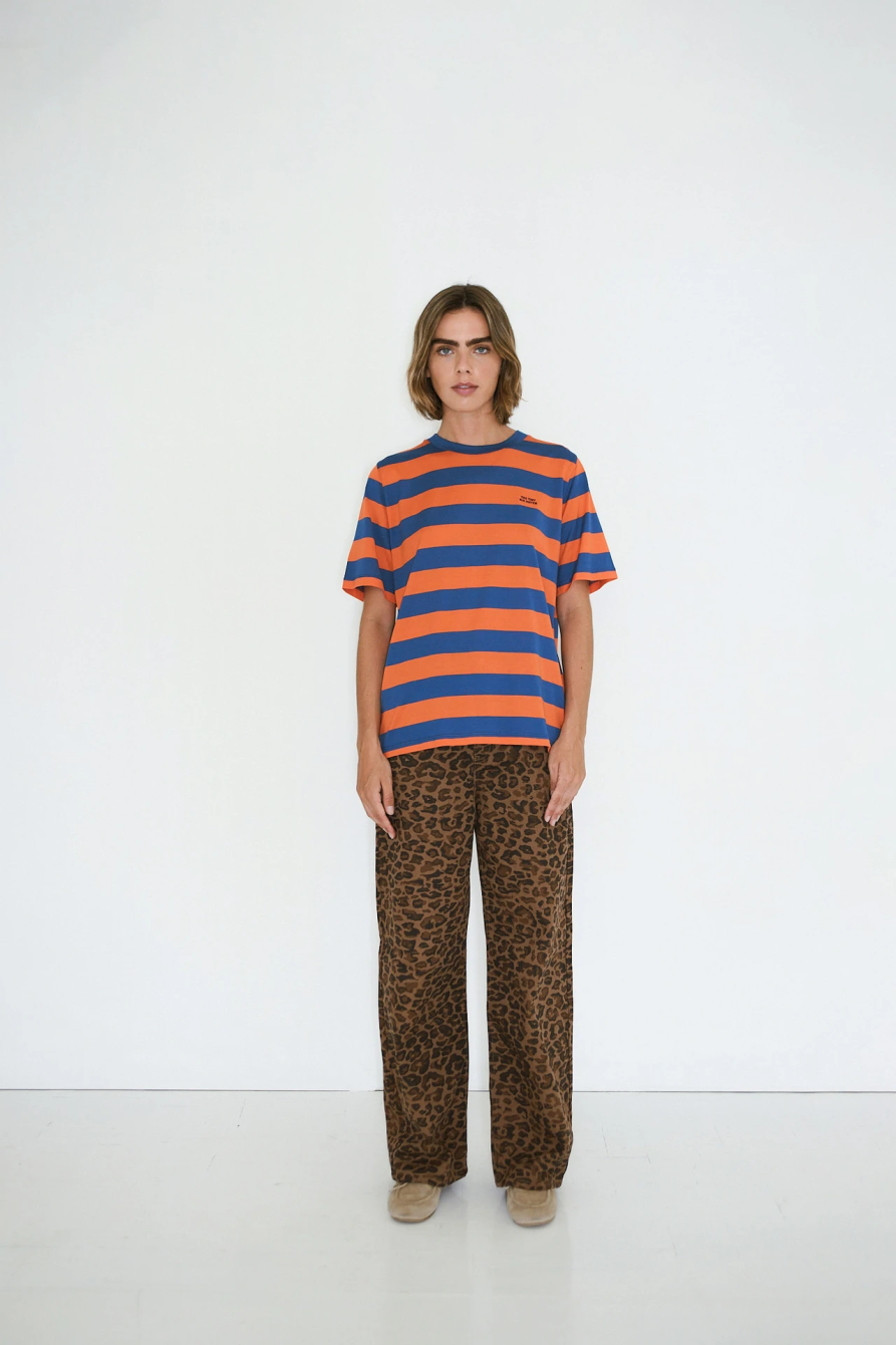 Pantalón Flores TTBS. Pantalón fluido confeccionado en tejido satinado. Con corte relajado y caída suave, cremallera oculta por tapeta y botones, bolsillos laterales. En color marrón chocolate con estampado de flores en tonos azules.