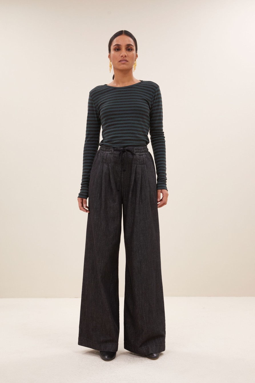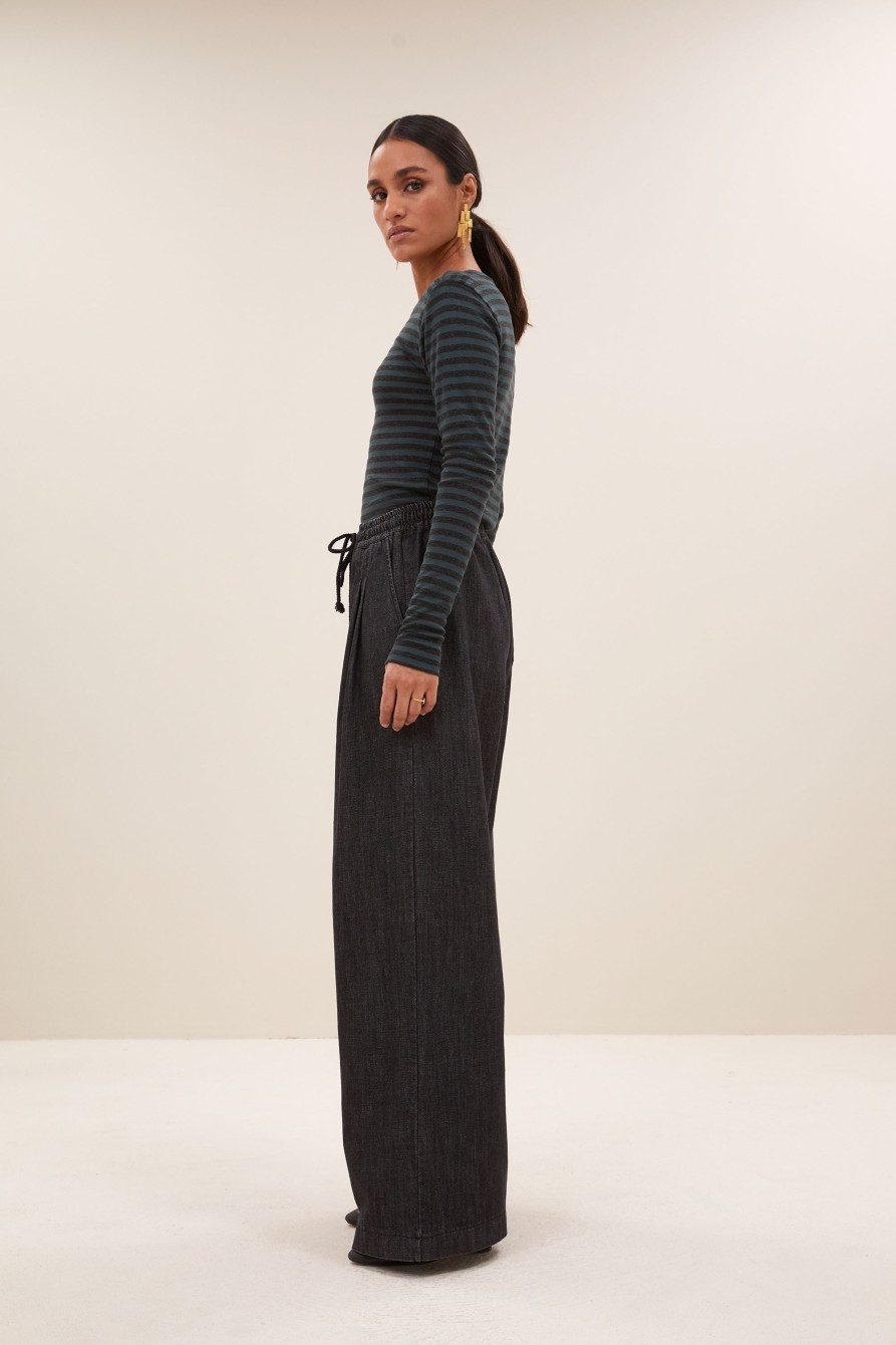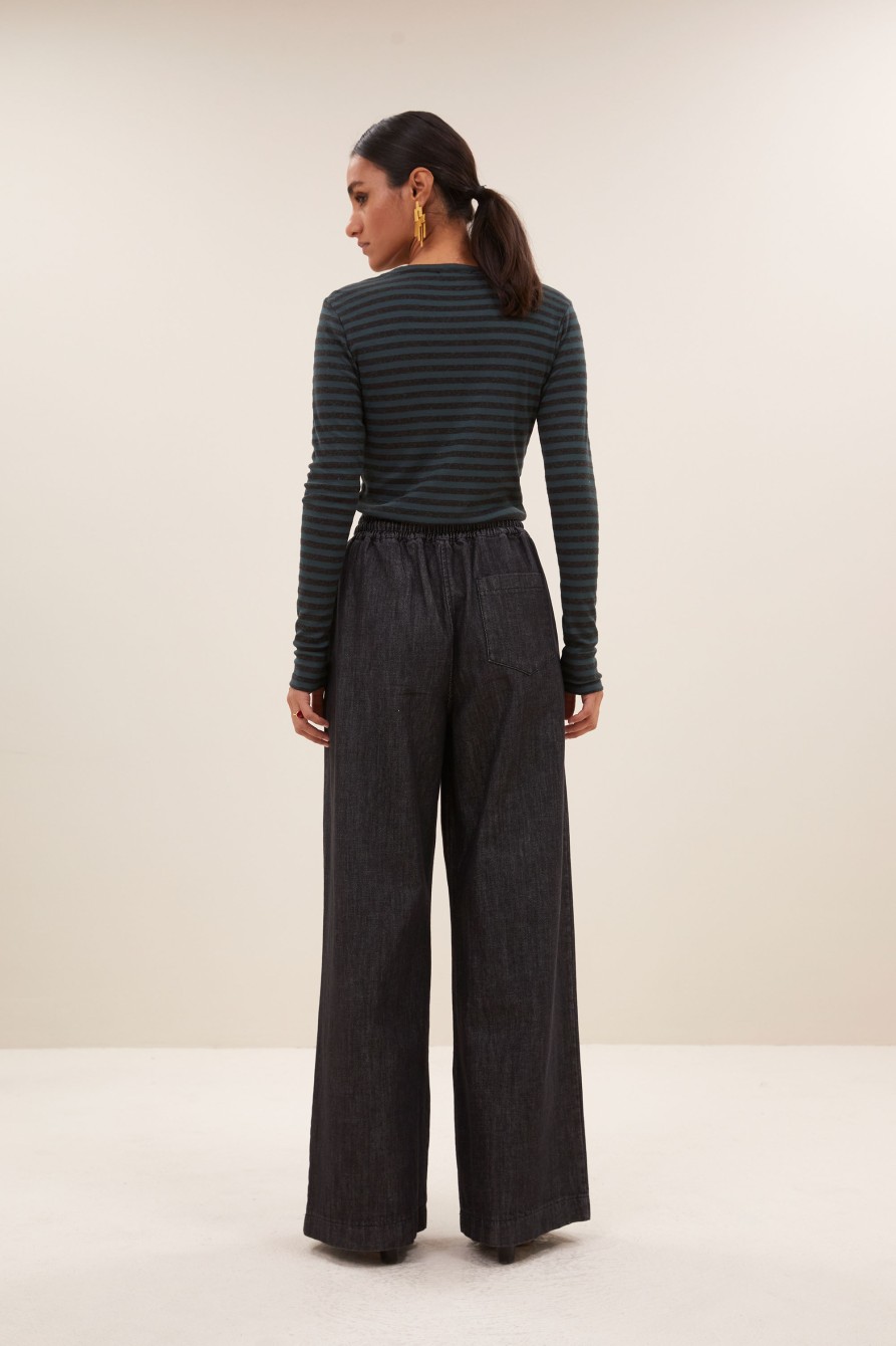 Vaquero de tiro muy alto que estila y alarga mucho la figura. Confeccionada en tejido de denim antiguo ( 13 oz ) en un gris ceniza. Cinco bolsillos.