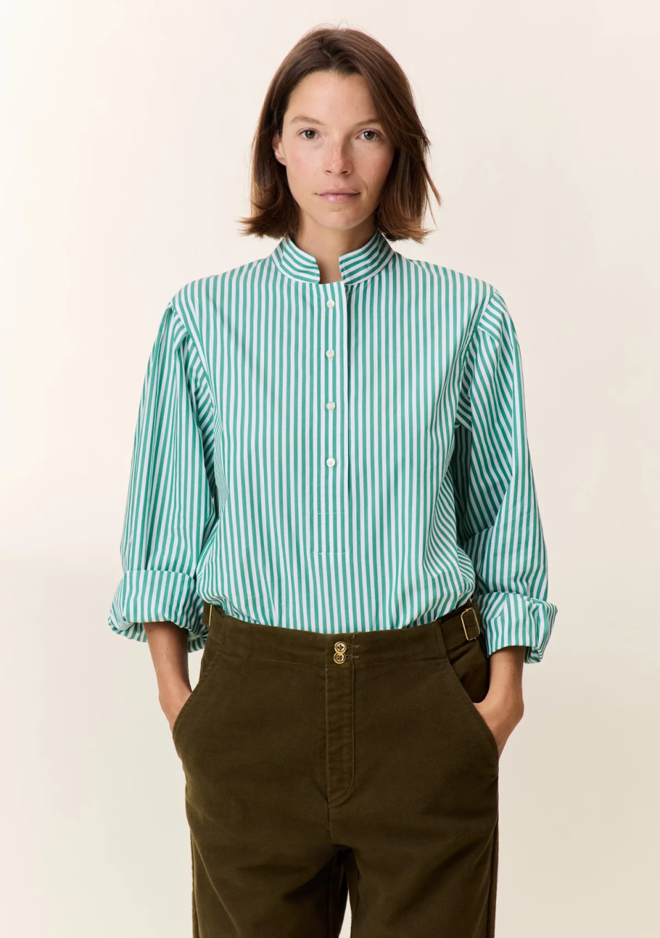 Bermuda Dione TNS. Bermuda de lana de pinzas en el delantero con talle alto y cierre de botones oculto. En color gris medio.