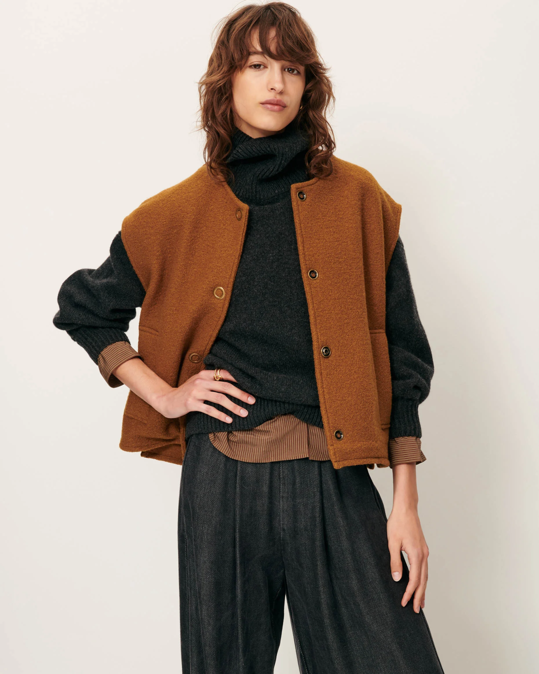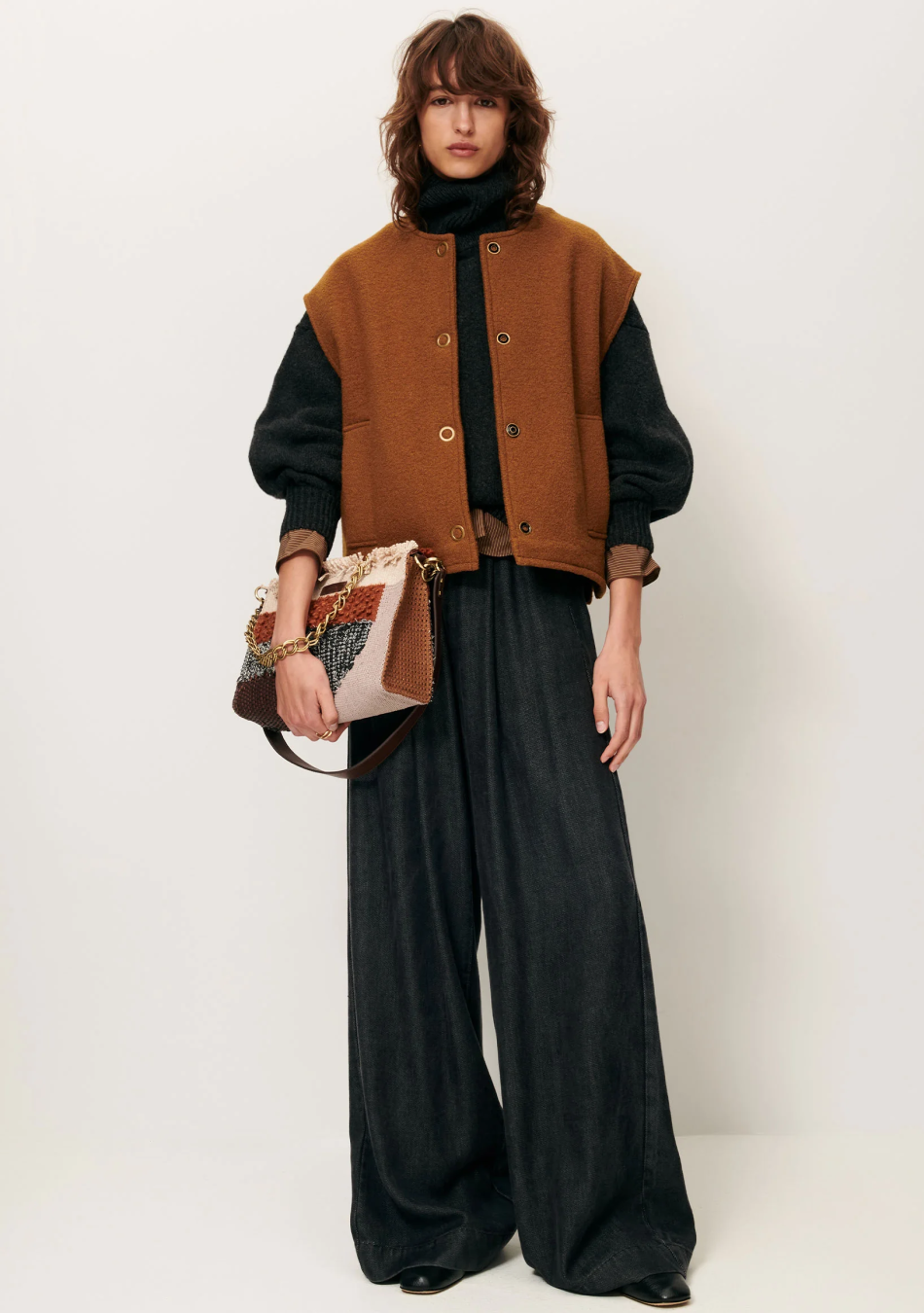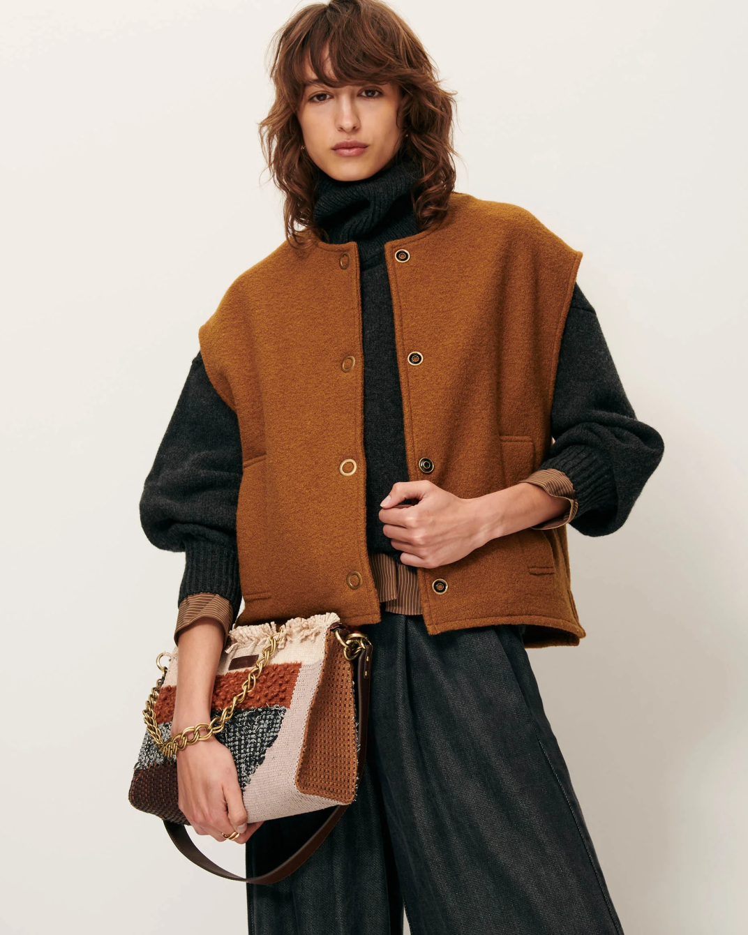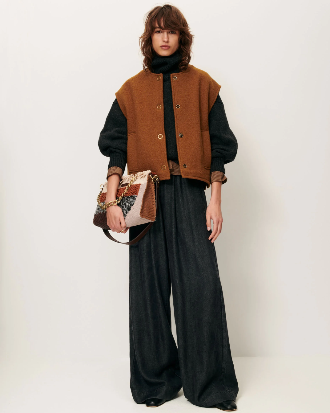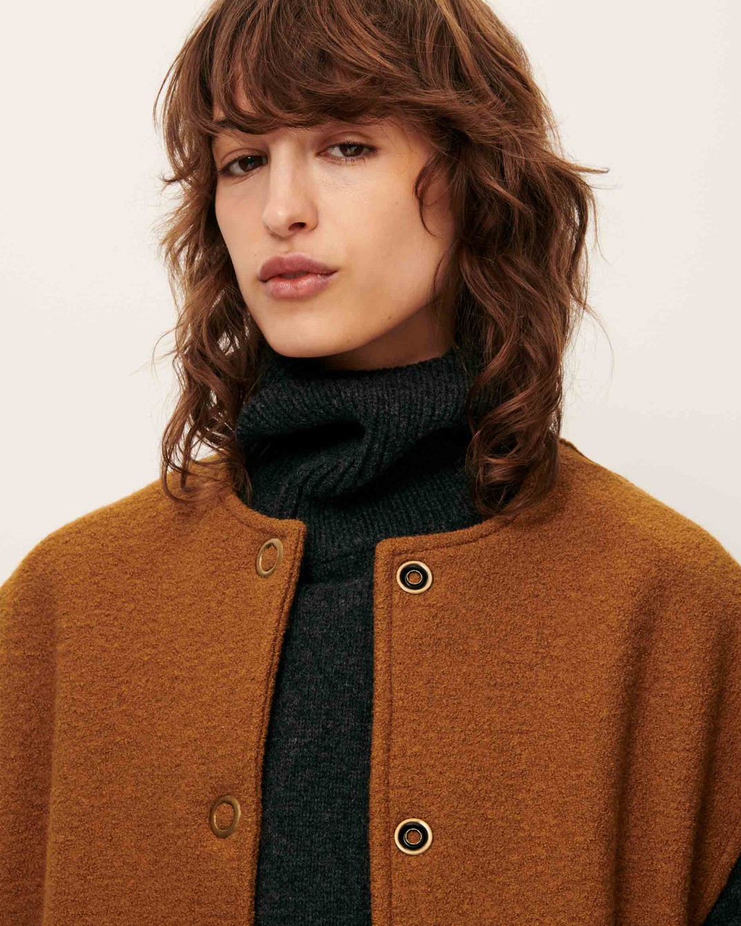Blusa en punto de algodón con cuello camisero y manga larga. Combínala con tonos crema o crudos.