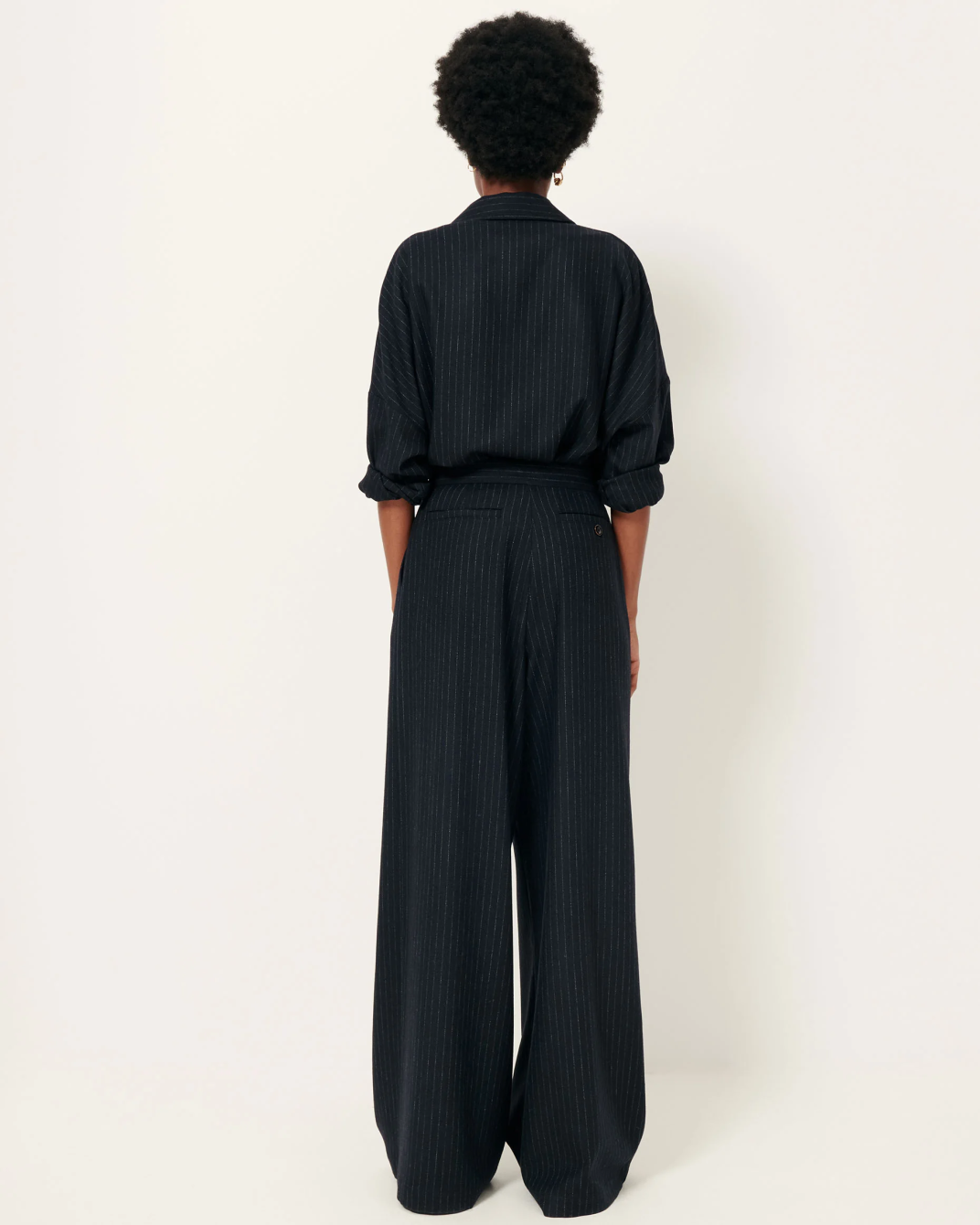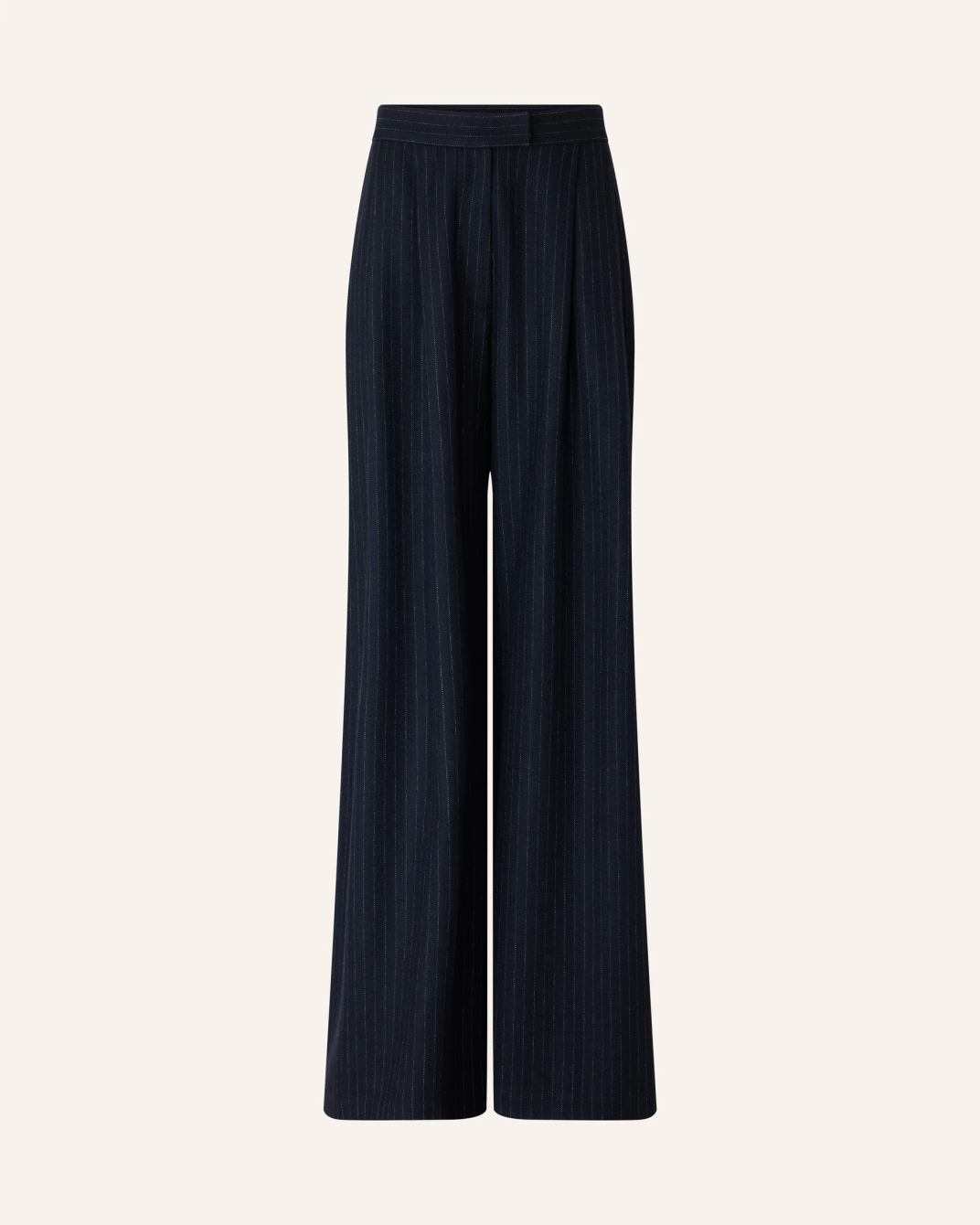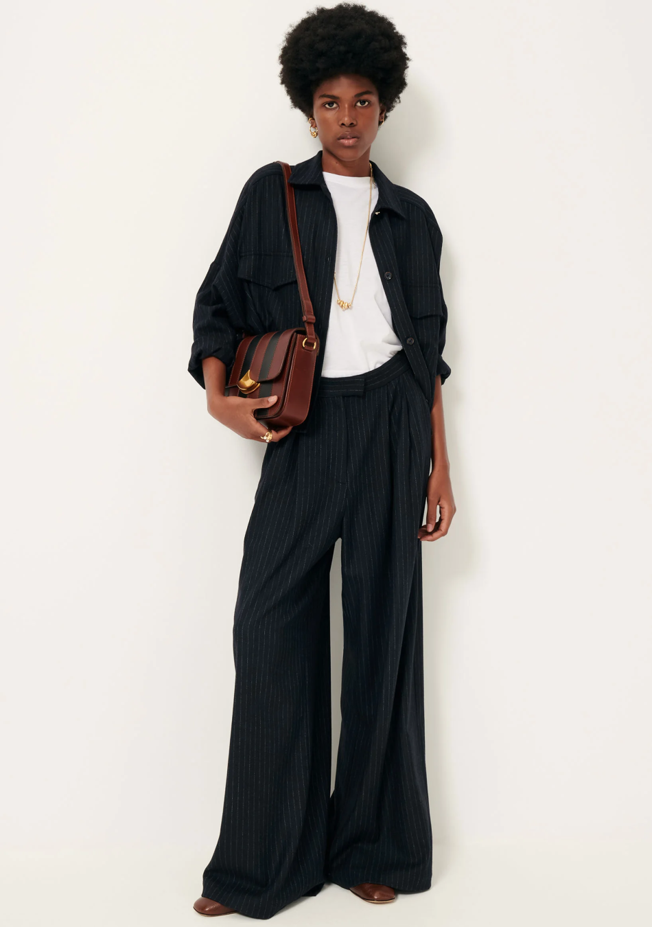 Pantalón de corte amplio en franela de sarga efecto chambray con motivo de rayas.