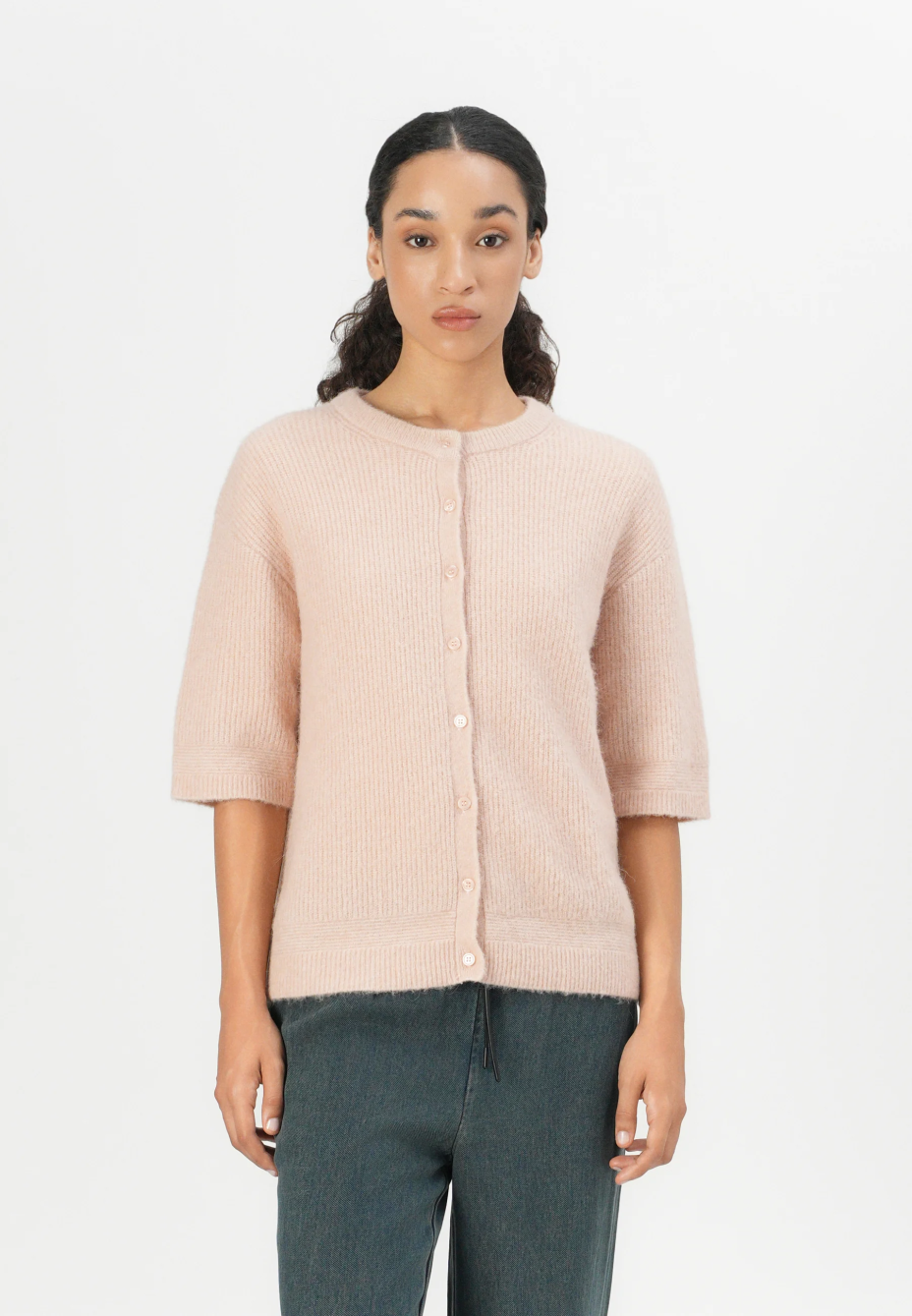 Cárdigan Chouette Des Petits Hauts. Cárdigan de mohair en color amarillo pastel. Corte recto, cuello redondo y abotonado en el delantero.