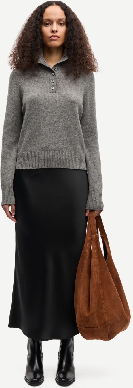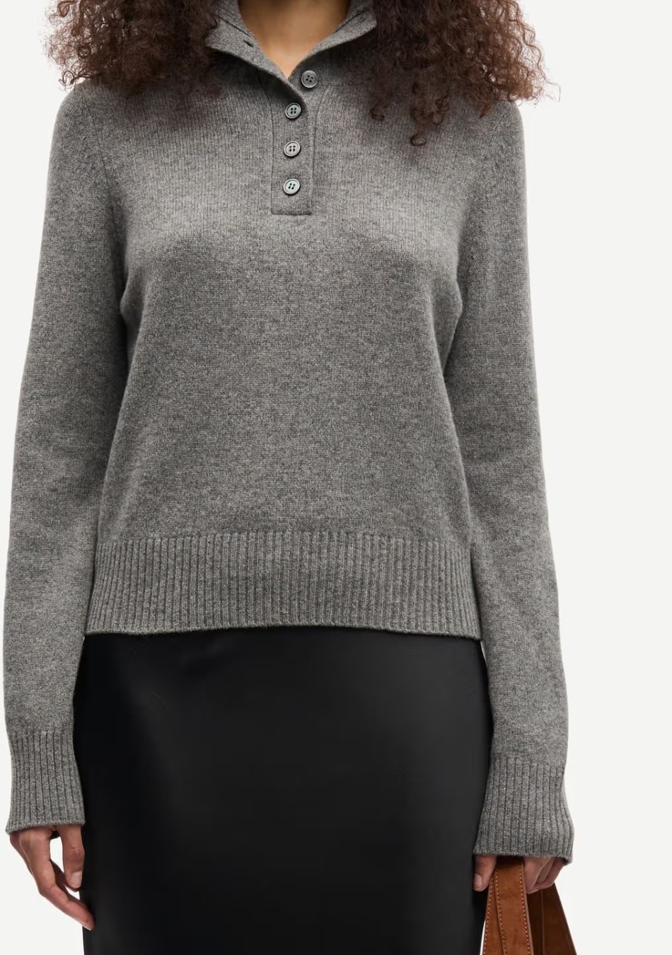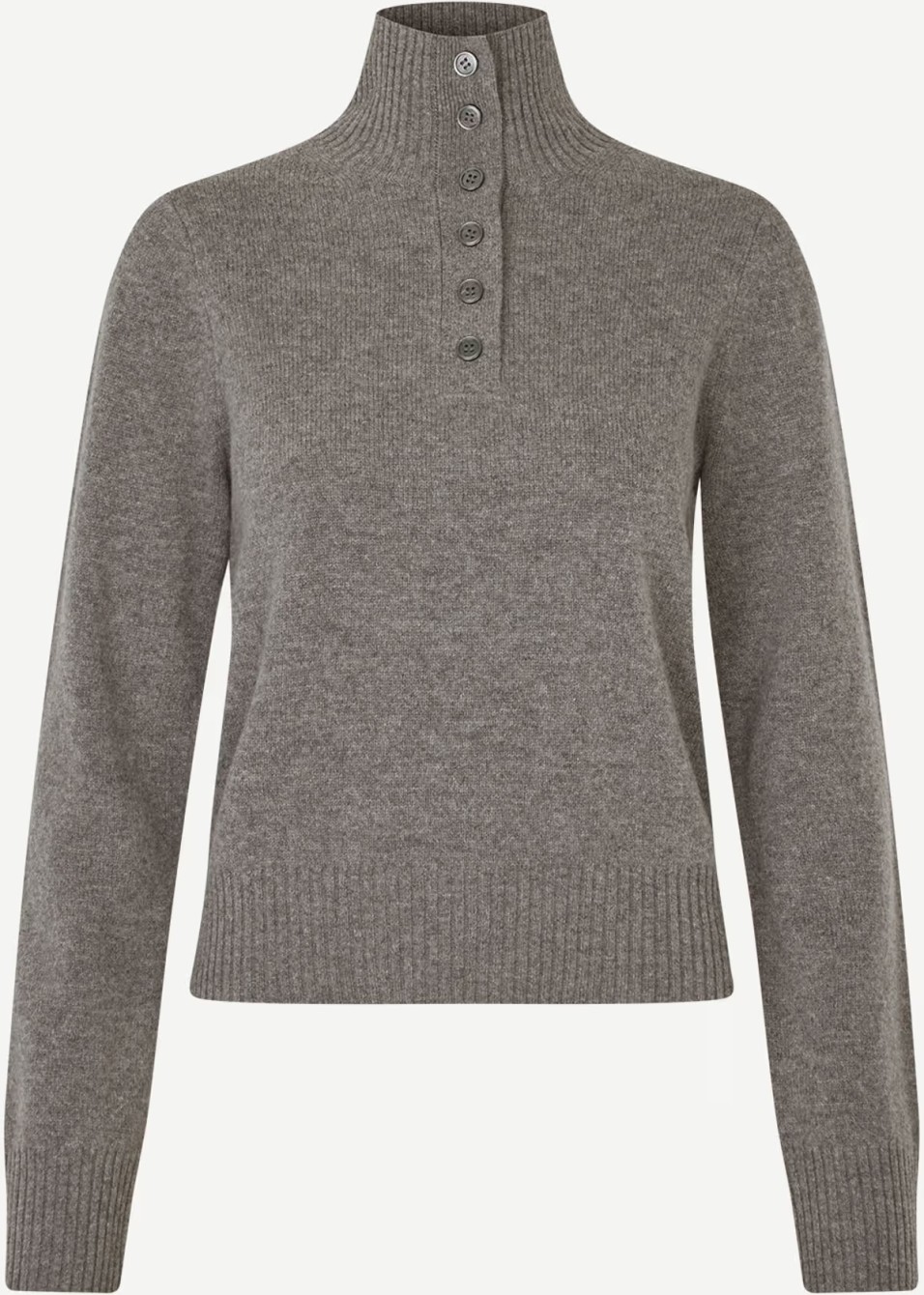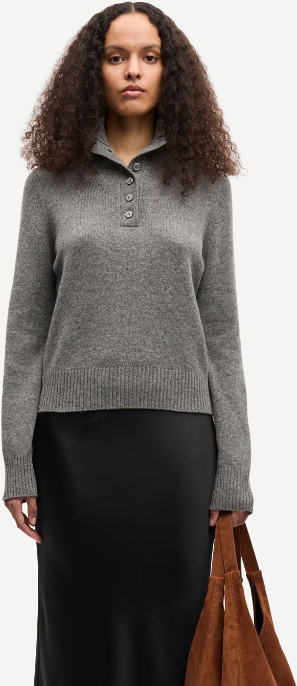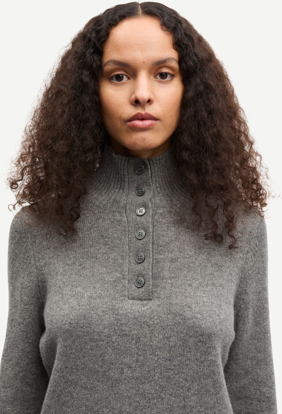 Jersey Saelif Samsoe Samsoe. Jersey de cuello alto, de corte regular tipo polo con botones en el delantero y acabados en canalé. En color gris medio.