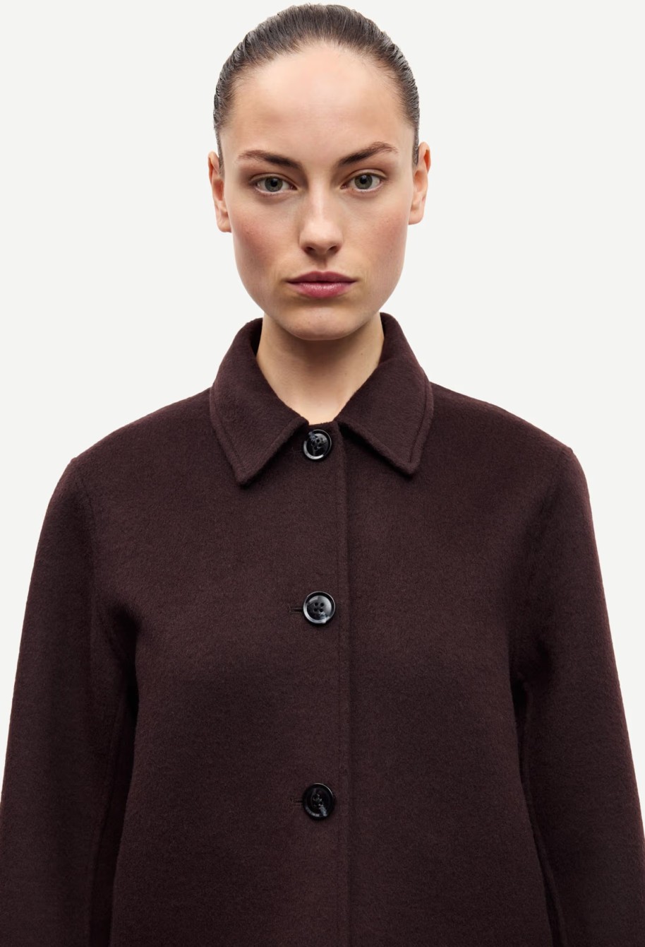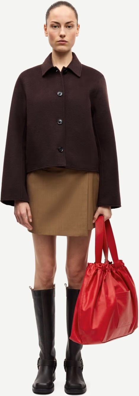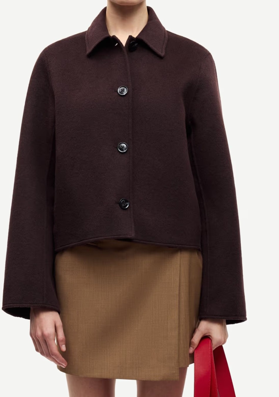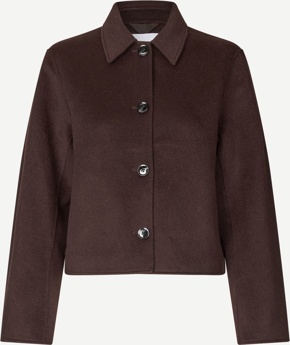 Chaqueta Theodore Sessùn. Chaqueta estilo sobrecamisa corta de manga larga, abotonada en el delantero y con bolsillos de parche, en color marón chocolate.