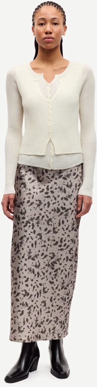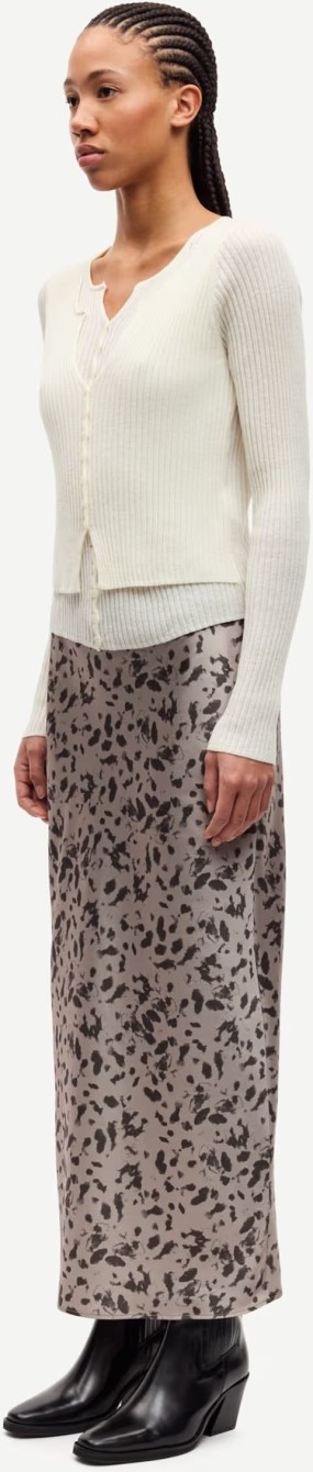 Cárdigan Saanoura Samsoe Samsoe. Cárdigan de manga corta, de corte regular, cuello redondo y abotonado en el delantero. En color rosa palo.