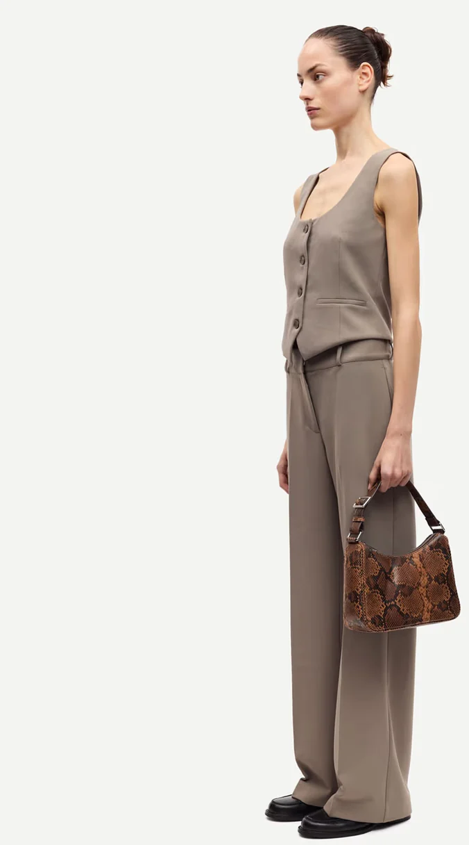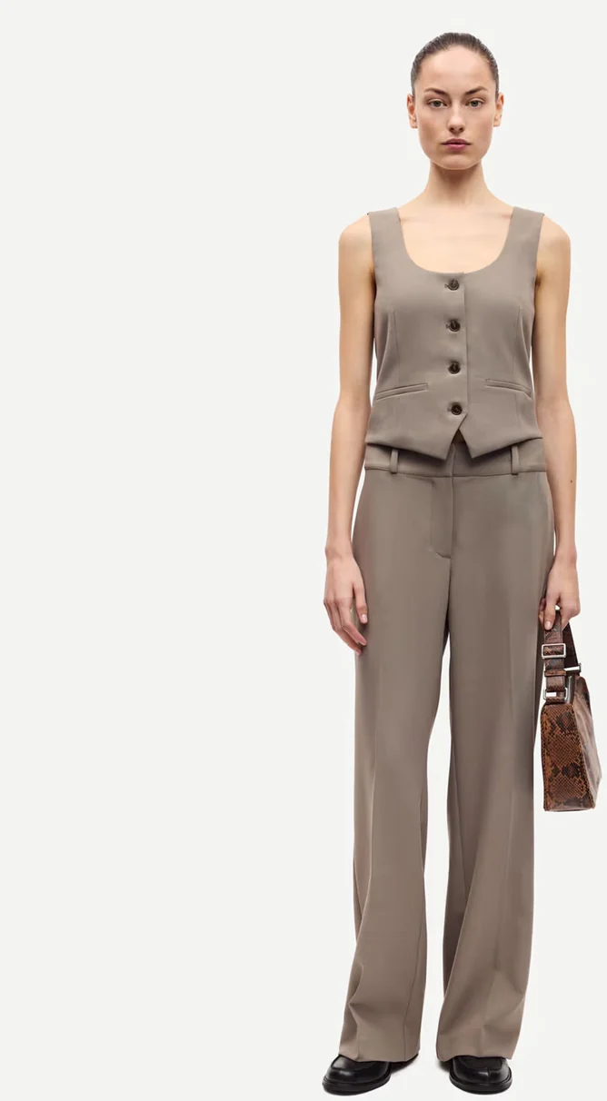 Pantalón Salaney Samsoe Samsoe. Pantalón de estilo traje de tiro bajo con corte regular y pernera recta. En color piedra.