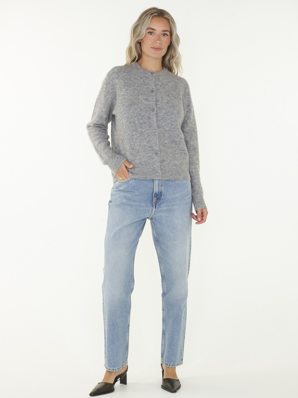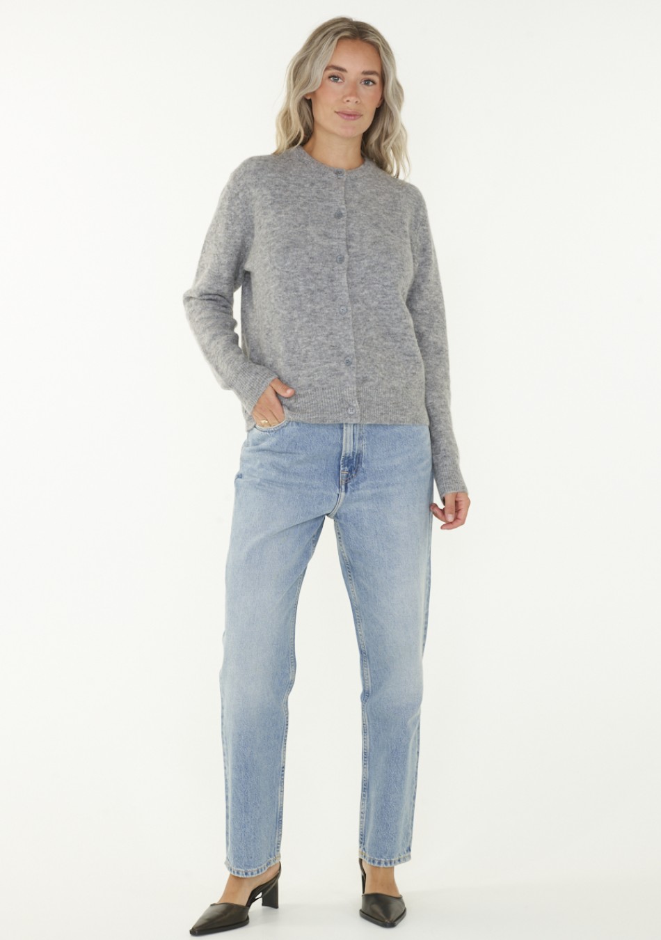 Vaquero Davis Sessùn. Pantalón vaquero de corte recto y talle medio-alto, con pernera ligeramente acampanada y largo tobillero. Puntadas a contraste, color azul denim oscuro.