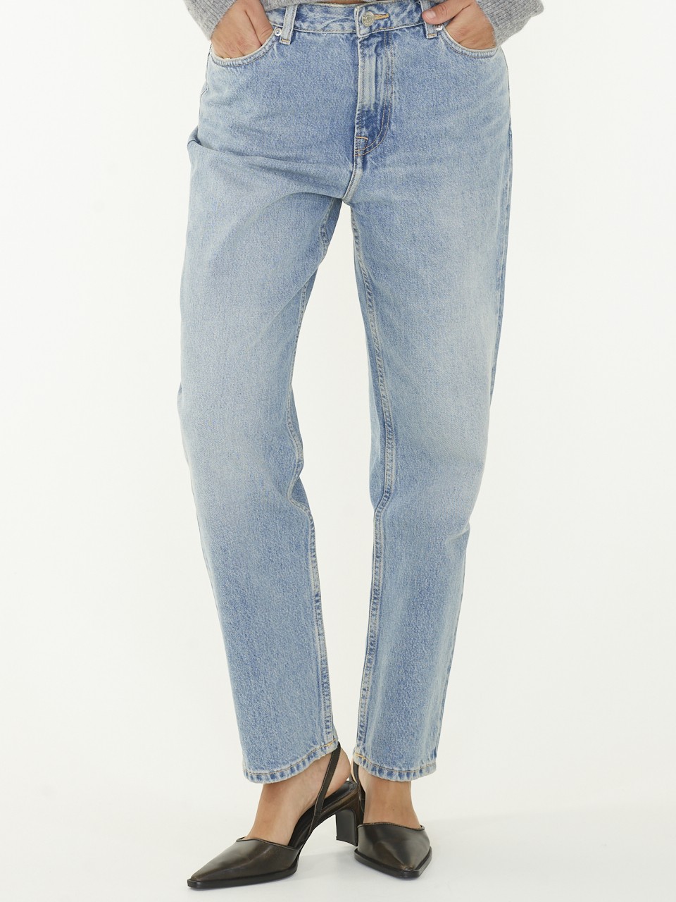 Vaquero de corte ballon de tiro alto y amplio en caderas. Confeccionado en algodón grueso reciclado.