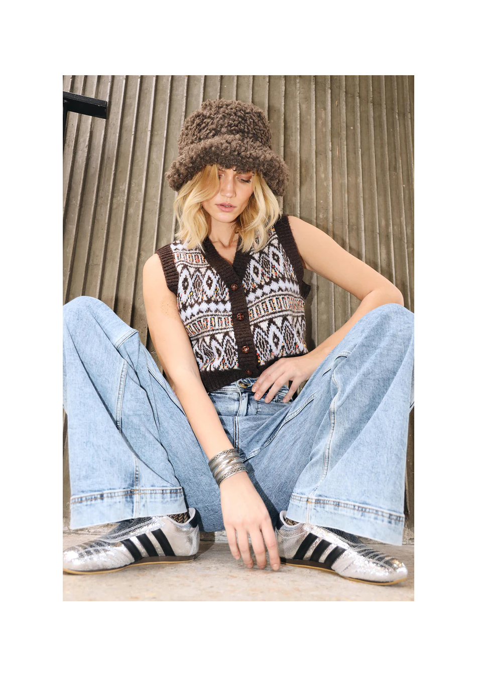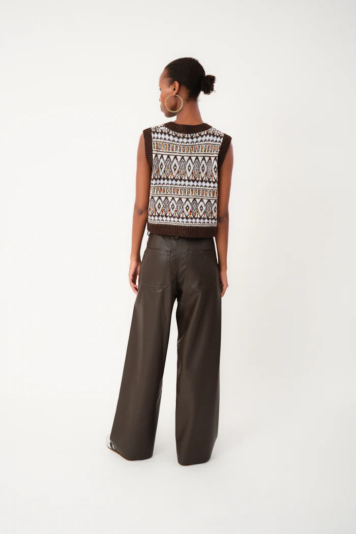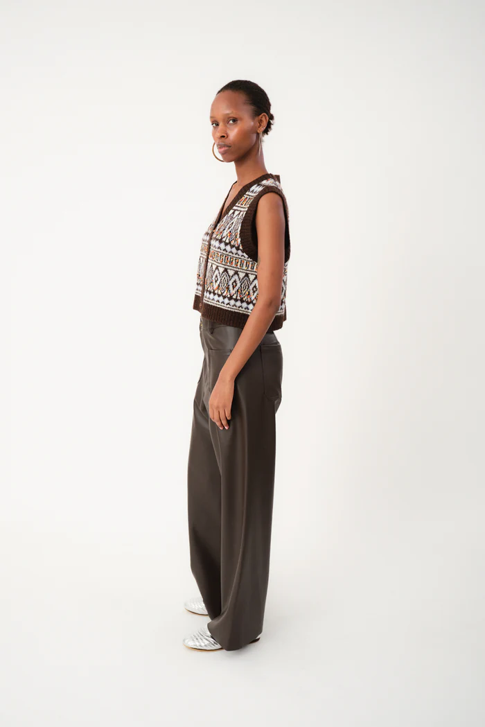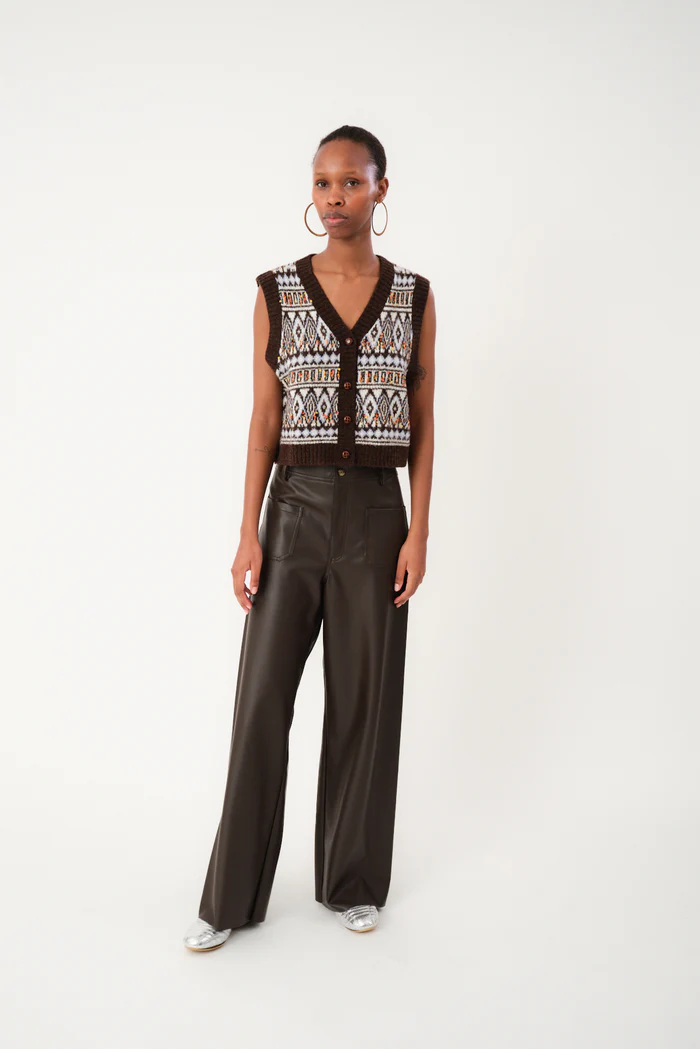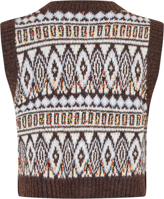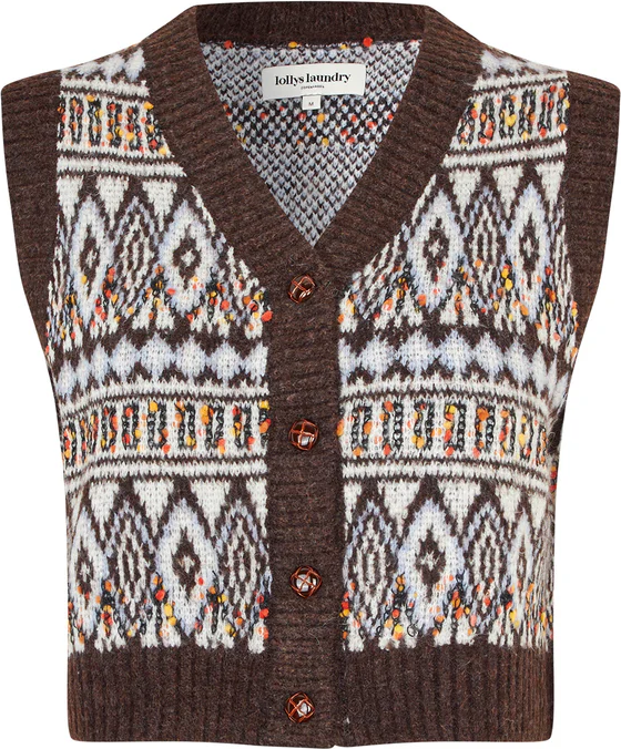 Chaleco Francesca Lollys Laundry. Chaleco de punto con estampado de jacquard sin mangas, con un silueta recta y corta, escote en "v" y botones decorativos.