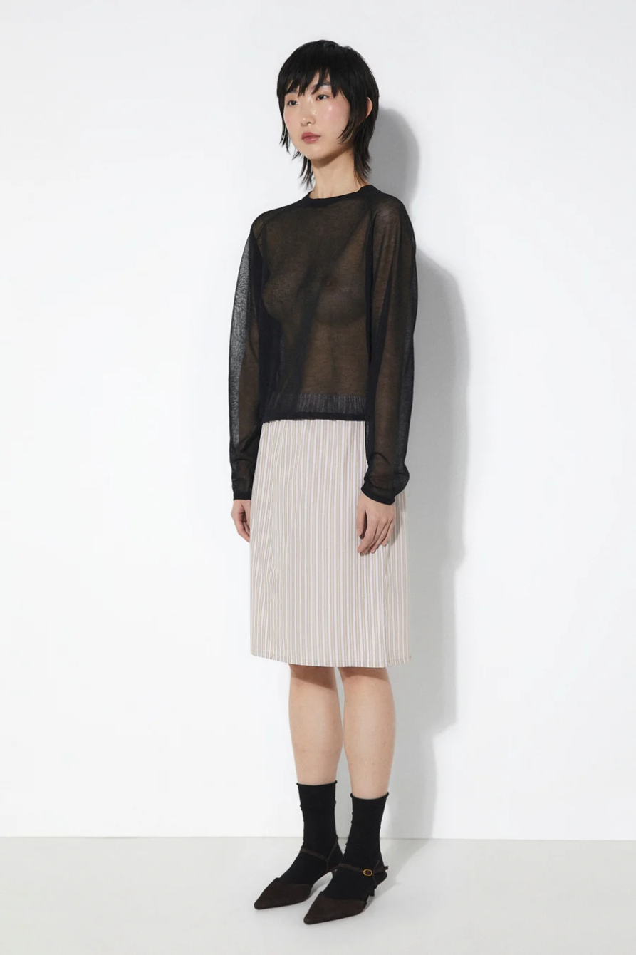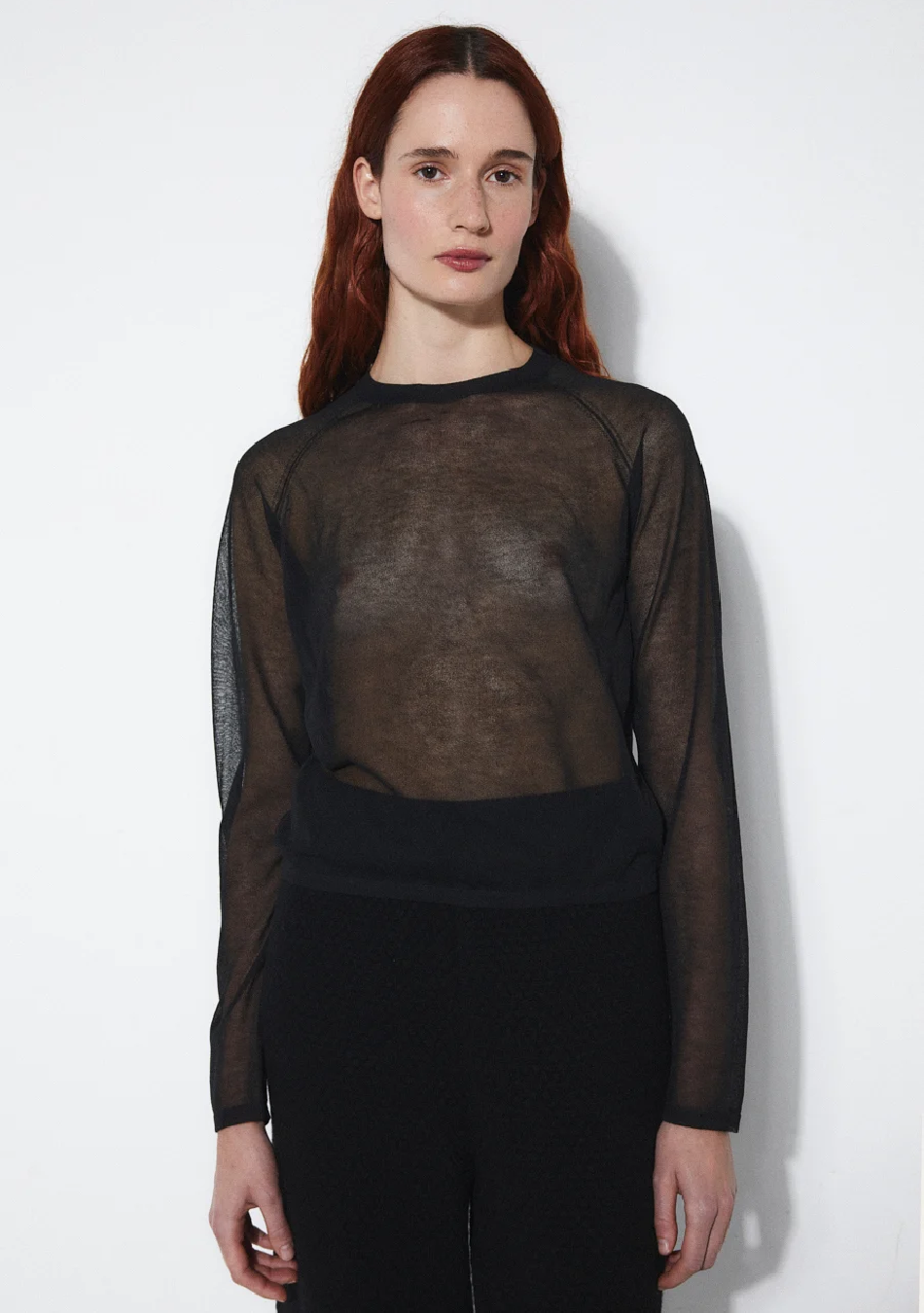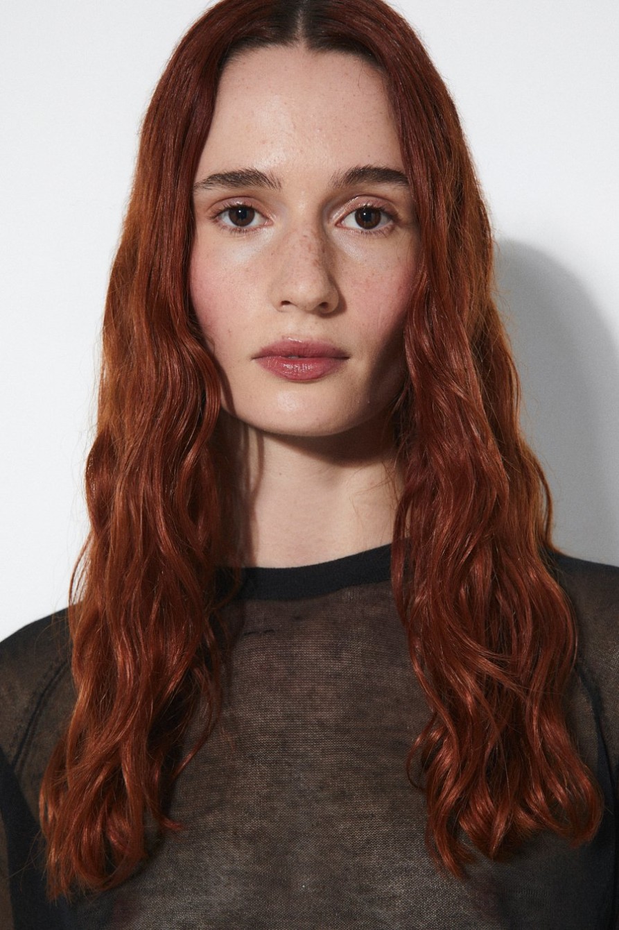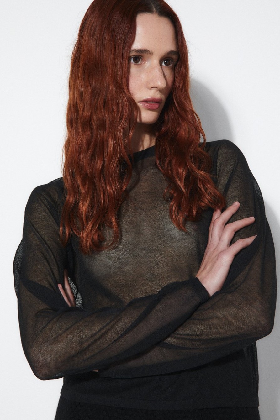 Top Alana Rita Row. Top de manga larga entallado en punto de lana con textura, hombros descubiertos y escote enrollado.