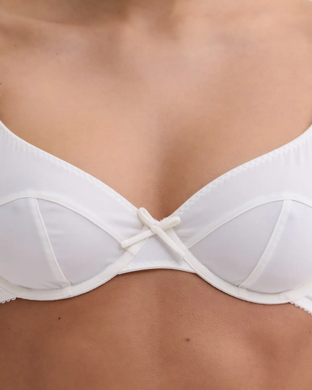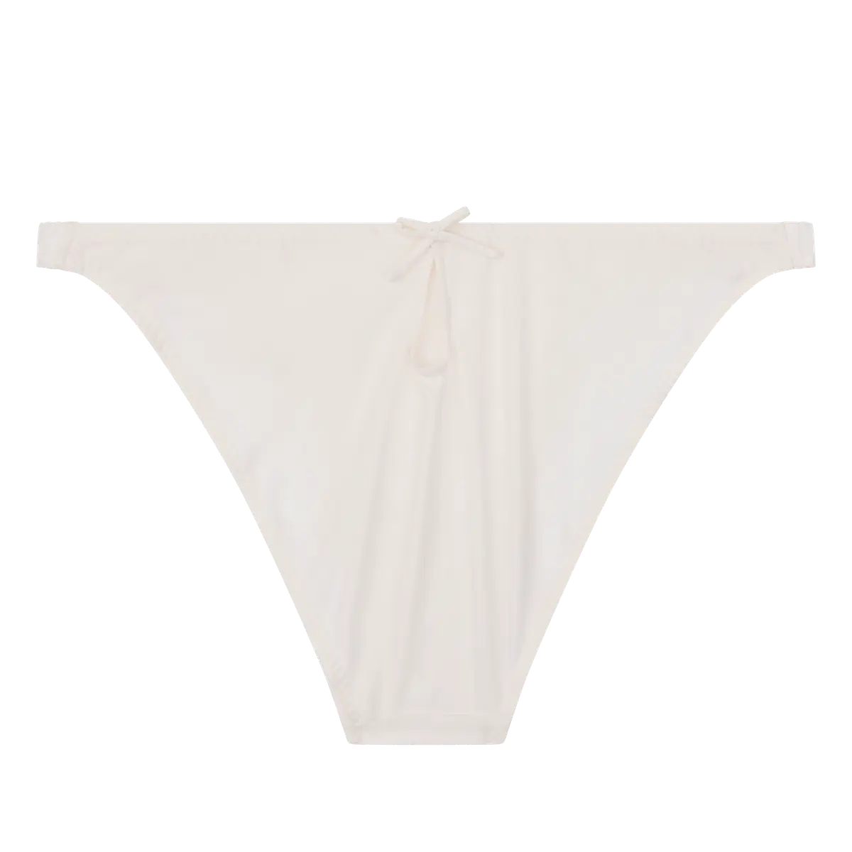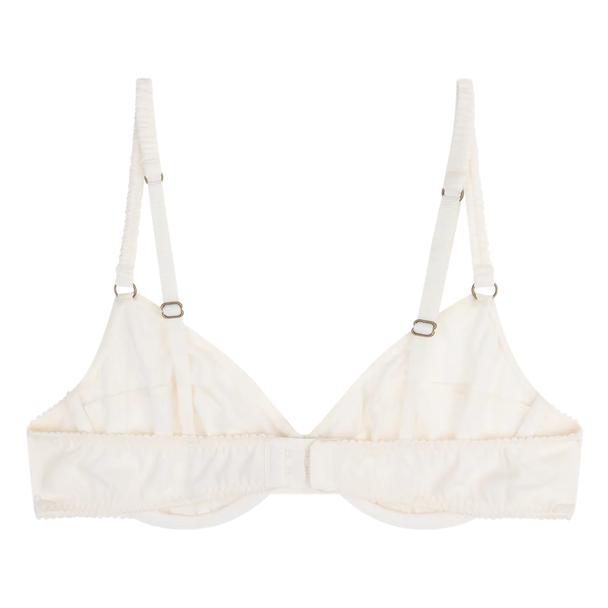 Conjunto Lencería Love Stories. Conjunto de lencería de encaje en color marrón. Sujetador tipo bralette con escote en "v" sin relleno y braguita tipo tanga de encaje.