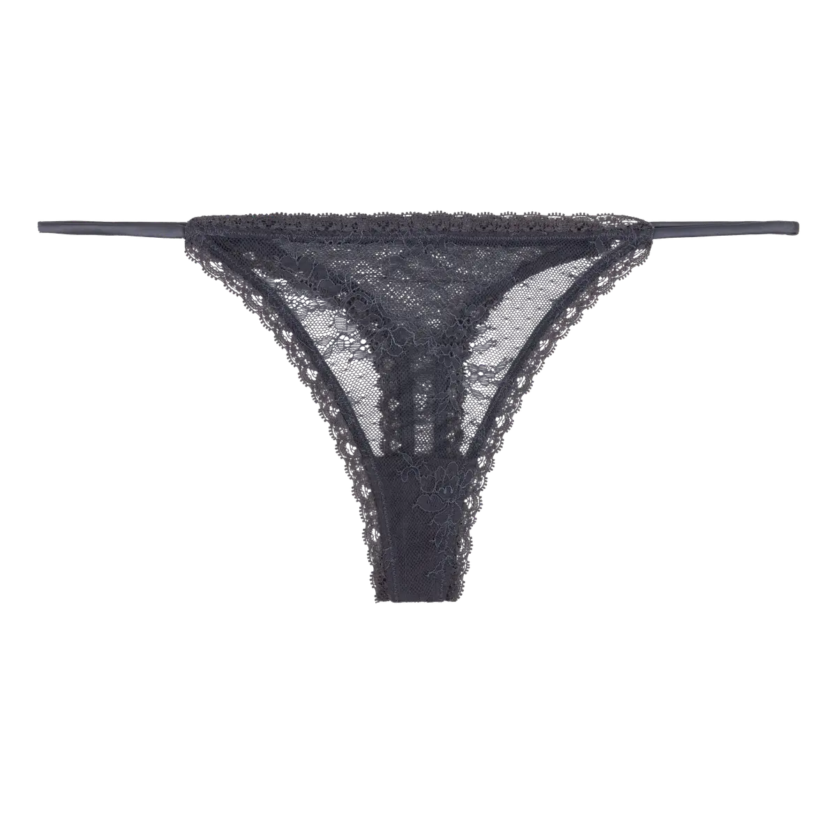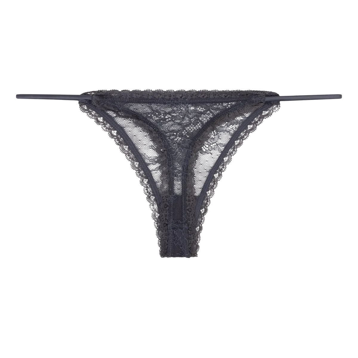 Conjunto Lencería Love Stories. Conjunto de lencería de encaje en color marrón. Sujetador tipo bralette con escote en "v" sin relleno y braguita tipo tanga de encaje.