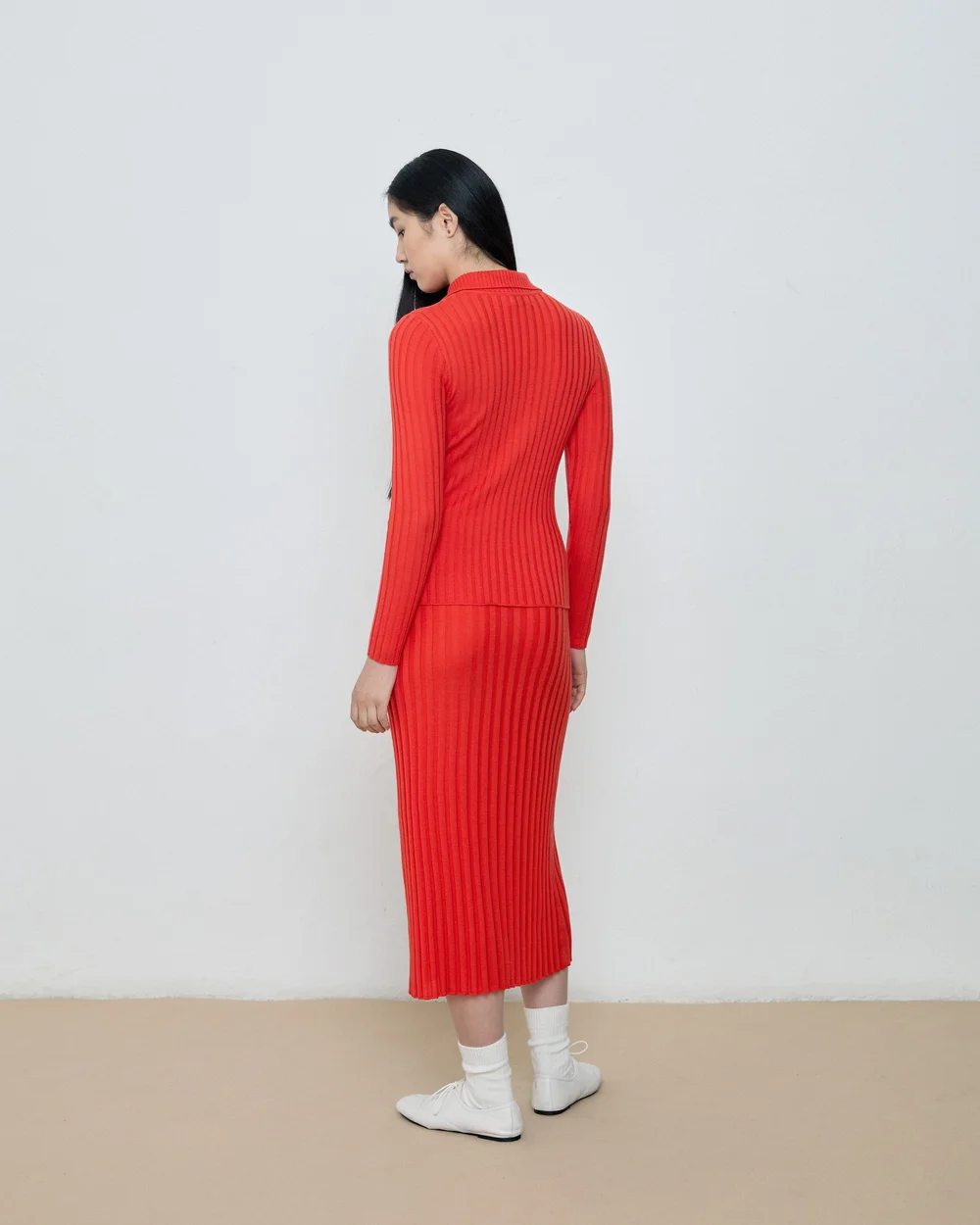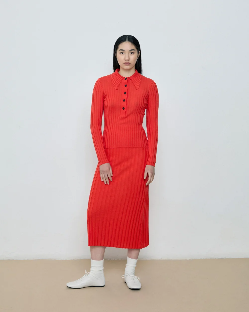 Top Jodi Sessùn. Jersey tipo polo con manga 3/4 en punto acanalado y calado. Acabados en contraste, en color beige.