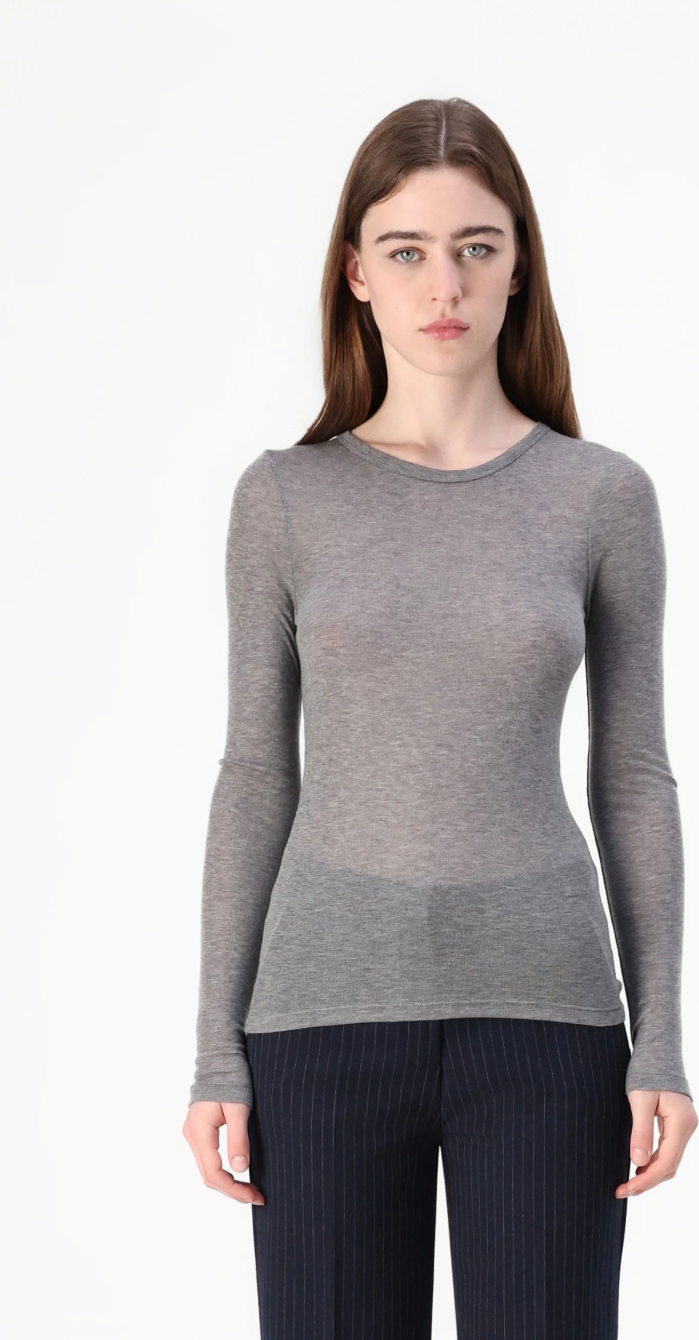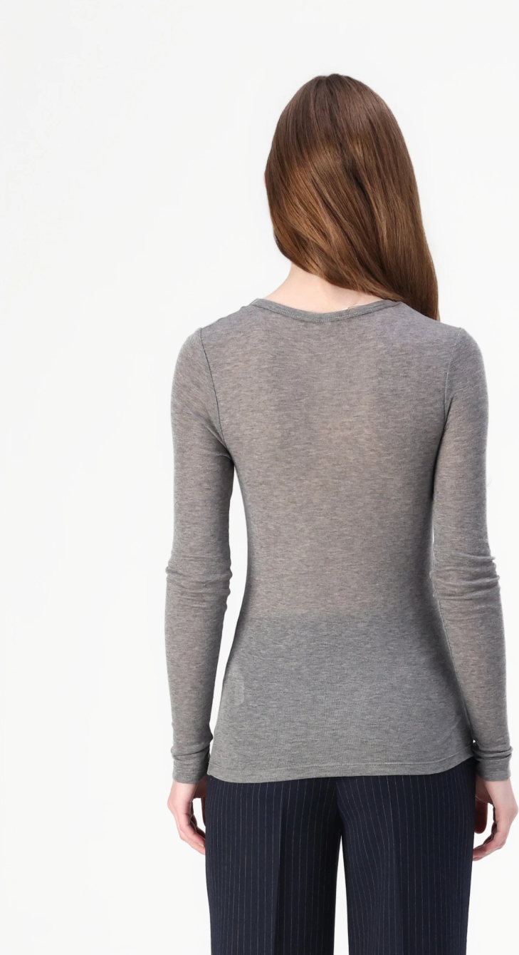 Camiseta Sadou Samsoe Samsoe. Camiseta de manga larga ajustada al cuerpo, con cuello redondo y en color rojo vibrante.