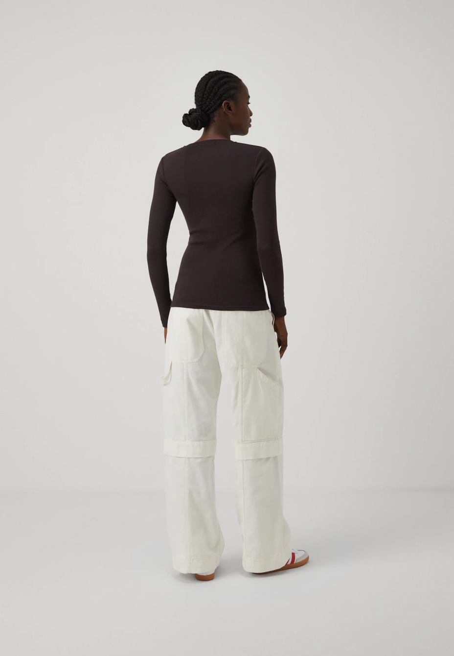Cárdigan corto de lana merino y manga larga con cierre con botones al frente y costuras en los hombros.