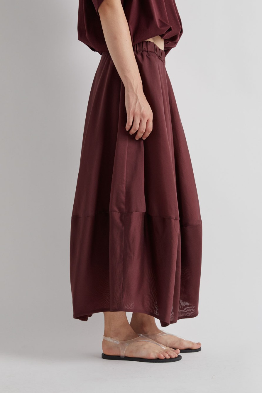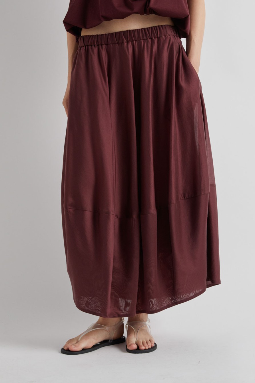 Pantalón blanco fluido con rayas verticales, goma en la cadera y bajo elástico estilo bombacho. Diseño ligero y cómodo con caída natural.