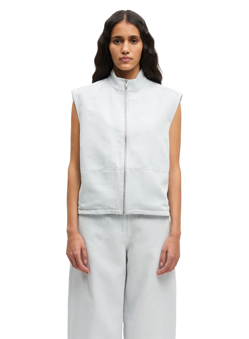 Vaquero de corte recto ligeramente ajustado y tiro alto que define la silueta. Presenta cierre con cremallera y botón metálico, cinco bolsillos, largo al tobillo y color curry.