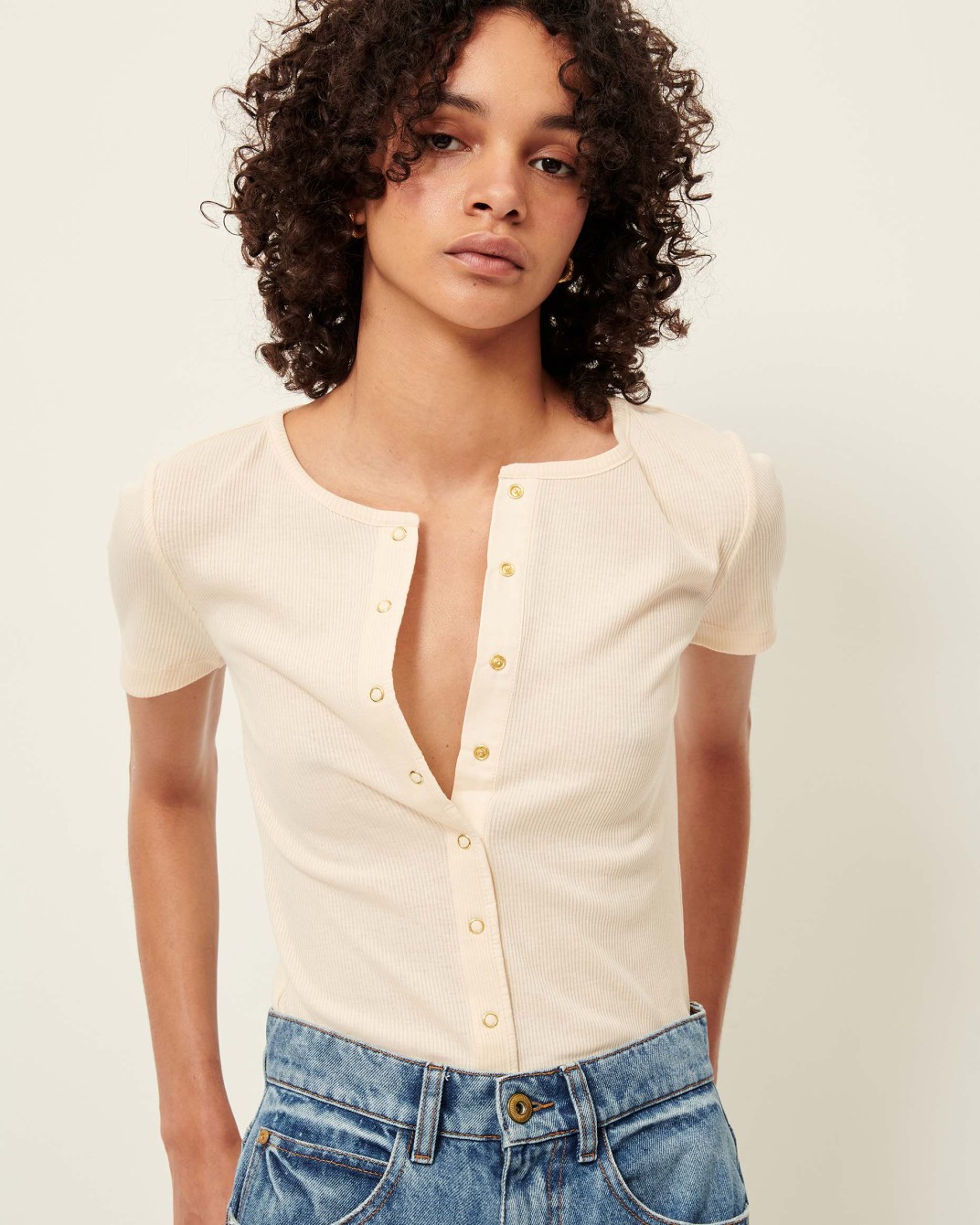 Short que presenta corte recto ligeramente evasé y tiro alto que estiliza la silueta y aporta comodidad. Cuenta con cierre con cremallera y botón metálico grabado, cinco bolsillos, largo medio muslo y acabado de bajo en corte vivo.