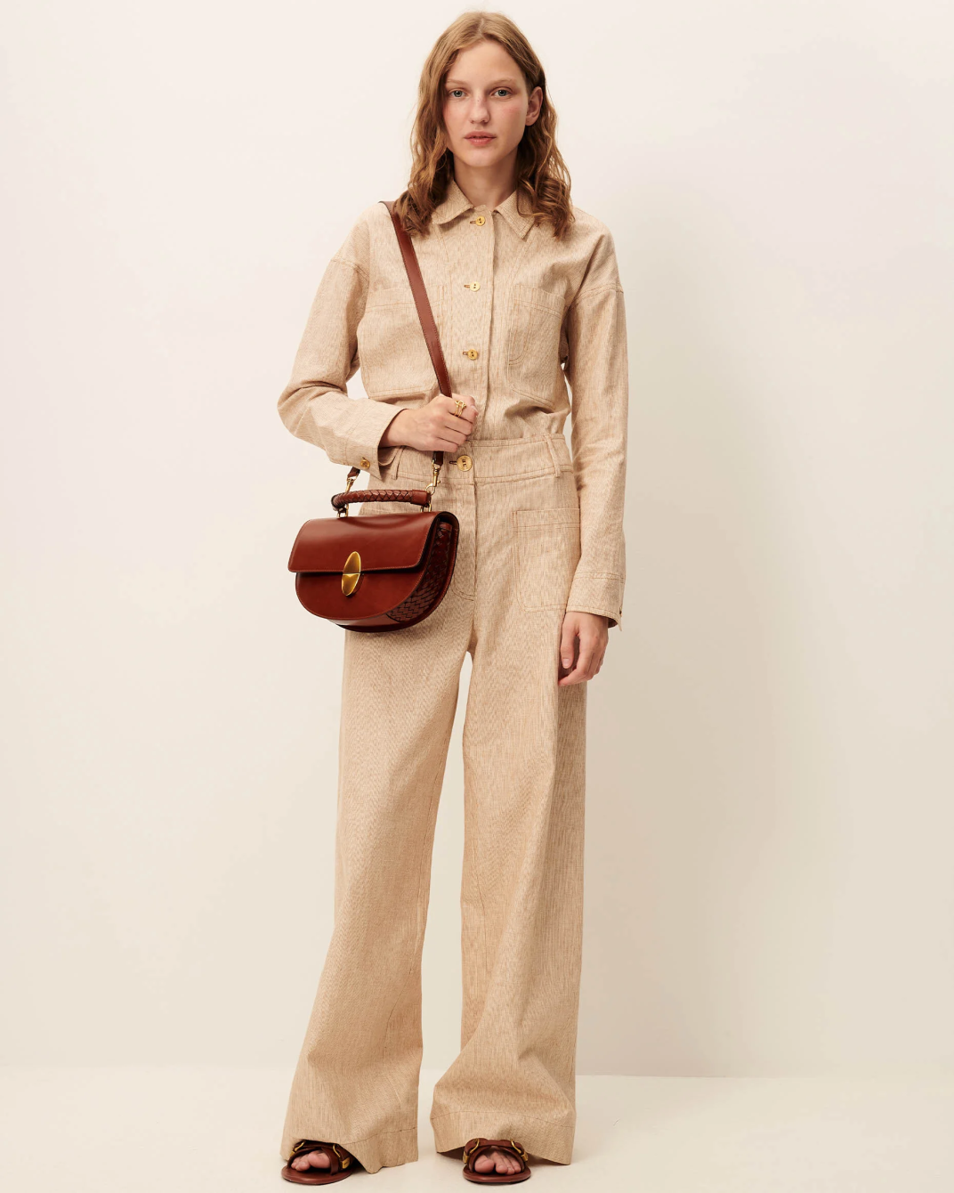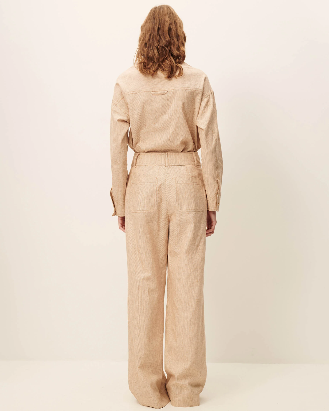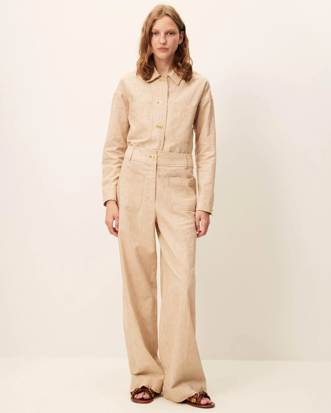 Pantalón de ajuste holgado y cintura normal. Largo completo con bolsillos laterales. Cómodo, ligero y perfecto para el día a día.