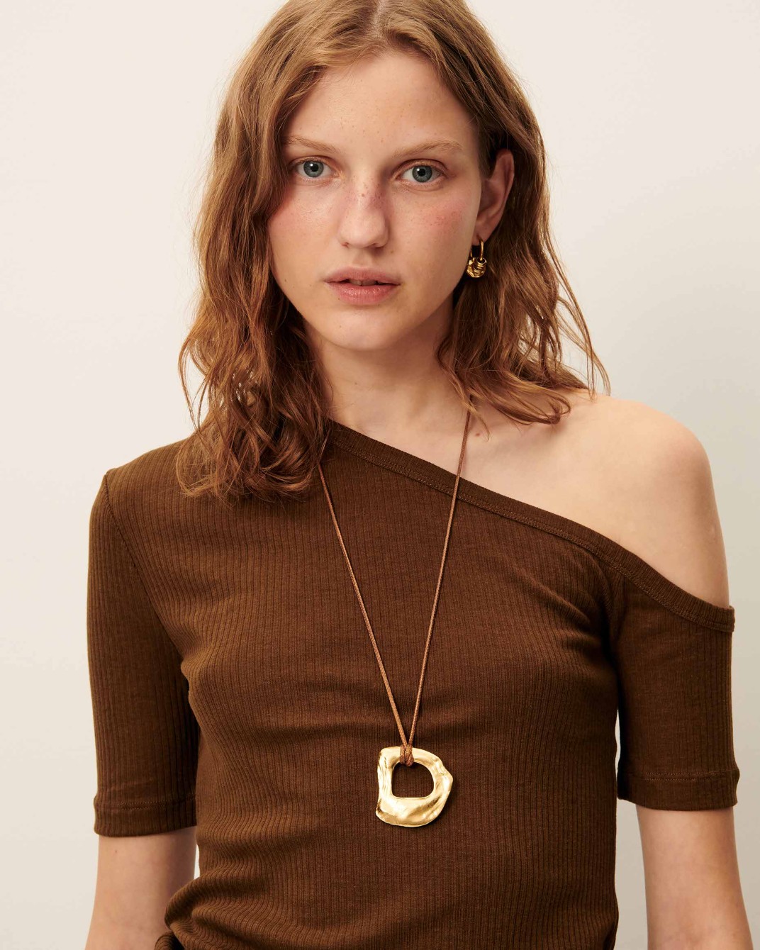 Top estilo rebeca en punto de algodón acanalado, con cuelo redondo, manga corta y cierre con clip al pecho.