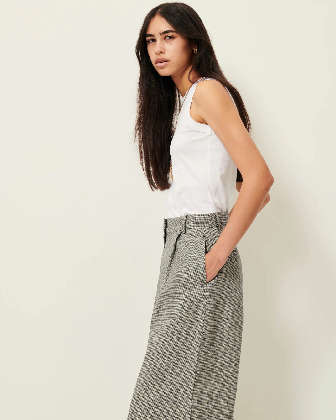 Vaquero Dalt Sessùn. Vaquero de talle alto con corte palazzo en sarga de algodón. En color azul denim.