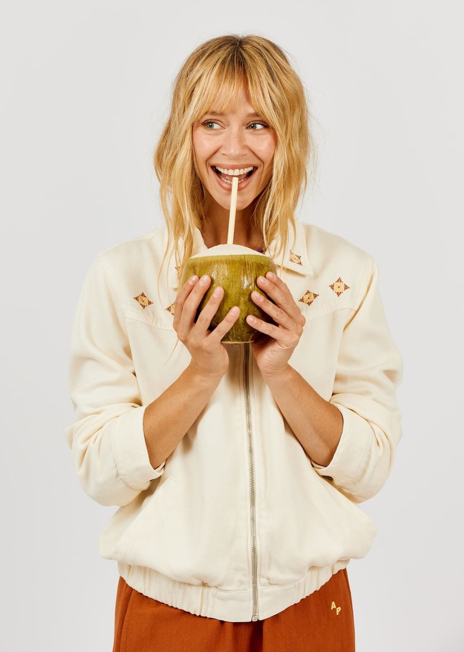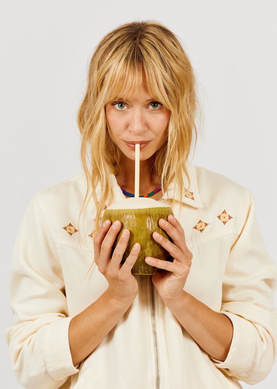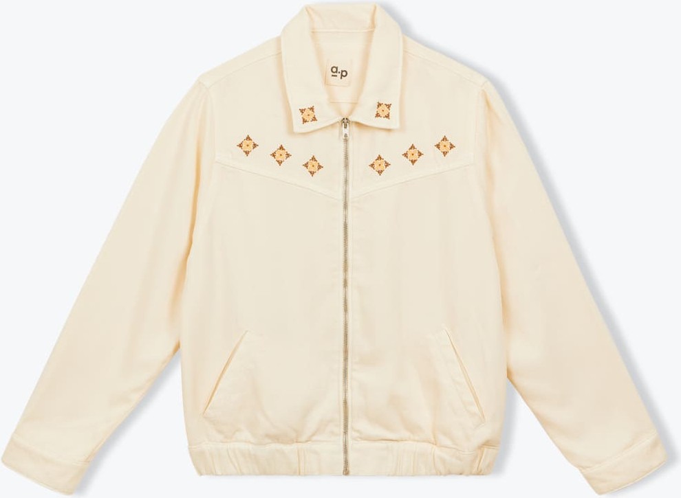 Bermuda de tiro alto en un tejido de mezclilla muy cómodo, con el detalle de bordados en el lateral en contraste.