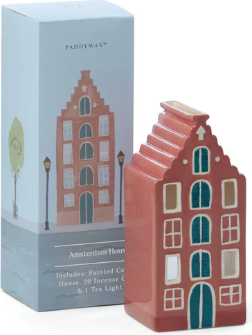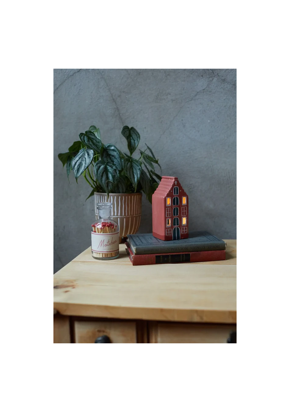 Inspirado en la arquitectura de Ámsterdam, este porta velas artesanal recrea con detalle los icónicos edificios del Canal. Ilustrado y pintado a mano sobre cerámica, aporta un toque auténtico y encantador a cualquier espacio.