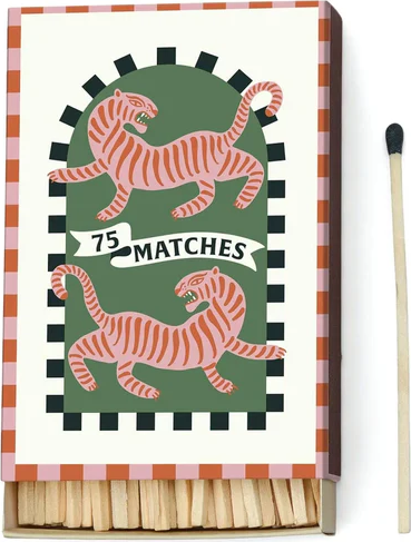 Caja con 75 cerillas de seguridad de 9,6 cm, con punta rosa y diseño mediterráneo inspirado en la colección A Dopo!. Ideales para encender velas con estilo y comodidad.