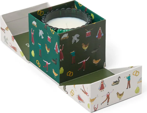 Estas velas en lata de 140 g con dos mechas presentan encantadoras escenas navideñas ilustradas, ideales para llenar tu hogar de nostalgia invernal y fragancias cálidas. Combinan notas de salida de cáscara de naranja de Valencia, bergamota siciliana y hojas verdes escarchadas, con un corazón especiado de canela de Ceilán, rosa blanca y granos de pimienta...